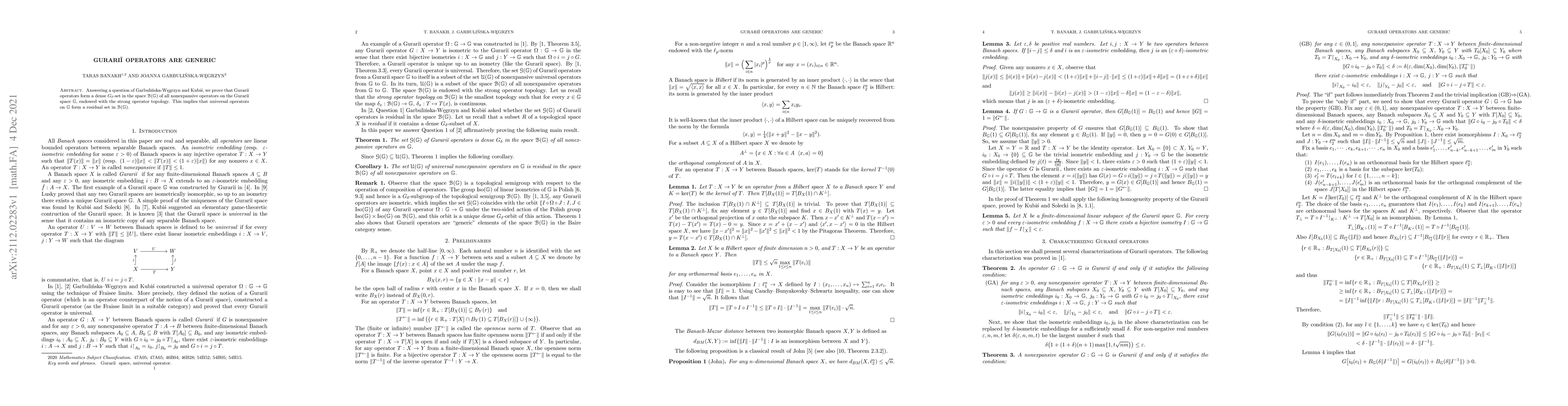 Answering a question of Garbuli\'nska-W\c{e}grzyn and Kubi\'s, we prove that Gurarii operators form a dense $G_\delta$-set in the space $\mathcal B(\mathbb G)$ of all nonexpansive operators on the Gurarii space $\mathbb G$, endowed with the strong operator topology. This implies that the set of universal operators on $\mathbb G$ form a residual set in $\mathcal B(\mathbb G)$.