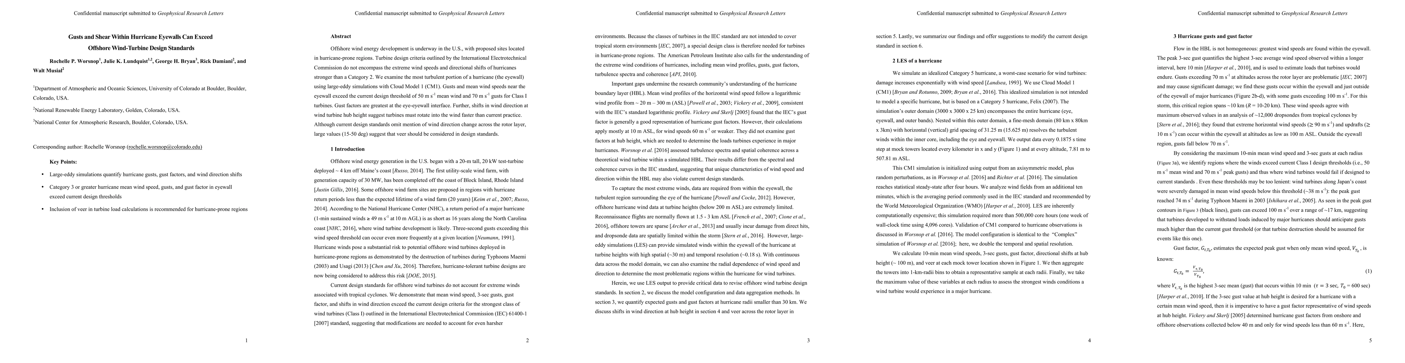 This study reveals that wind speeds and gusts in hurricane eyewalls, particularly at the eye-eyewall interface, exceed current offshore wind turbine design standards. It suggests that turbine design must account for extreme wind direction shifts and higher rotational speeds to ensure safety.