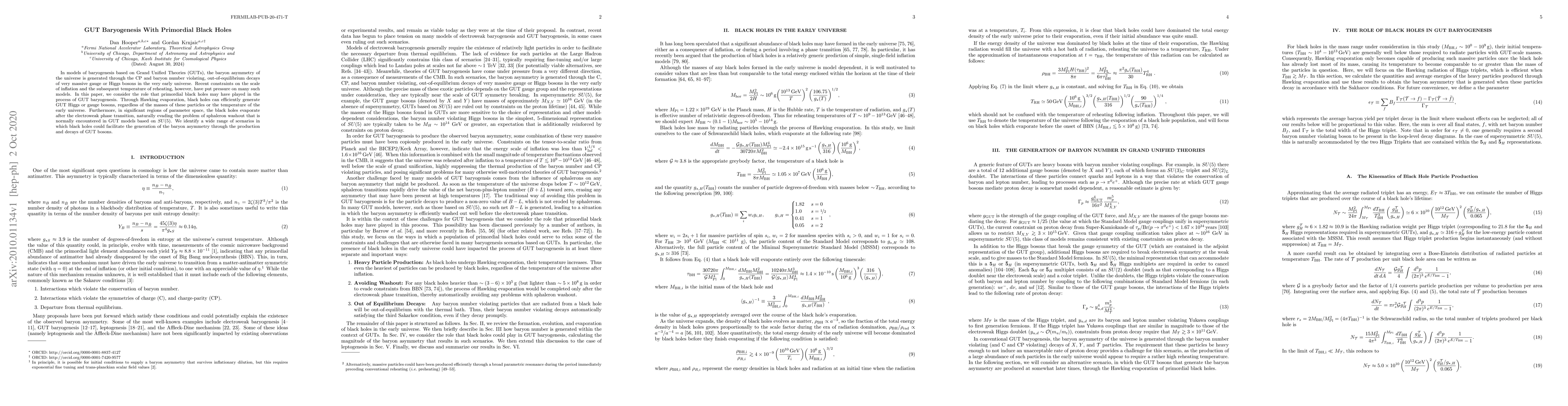 This paper explores GUT baryogenesis facilitated by primordial black holes, proposing that Hawking evaporation can generate GUT bosons and bypass traditional sphaleron washout issues, offering a viable mechanism for generating the universe's baryon asymmetry.