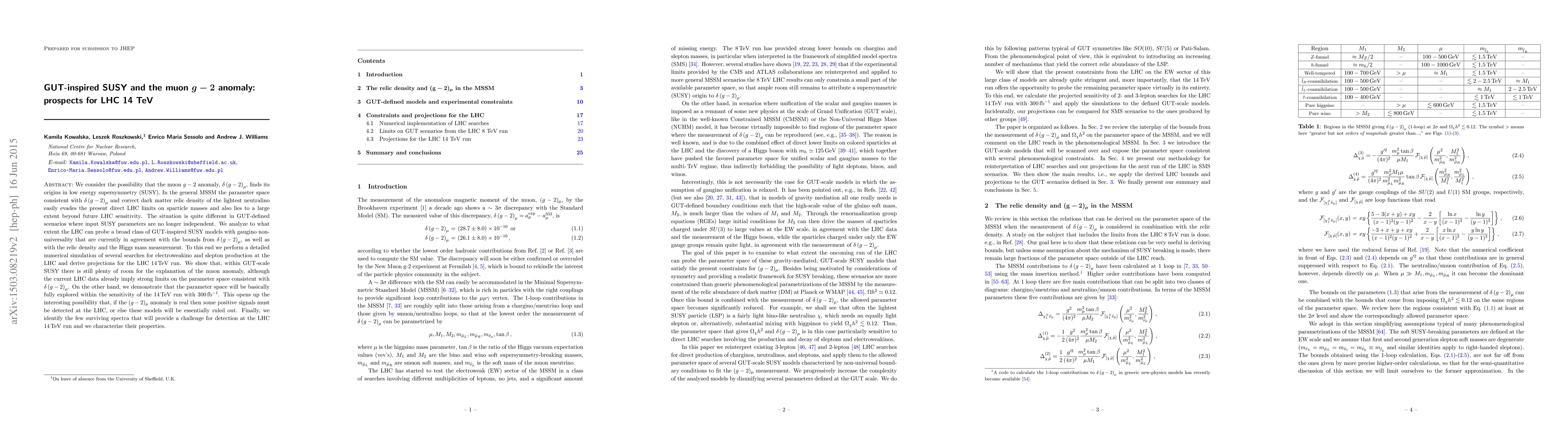 This paper explores how GUT-inspired low energy supersymmetry (SUSY) models can explain the muon g-2 anomaly while remaining beyond current LHC limits. It concludes that the LHC's 14 TeV run will likely fully explore this parameter space, potentially confirming or ruling out these models.