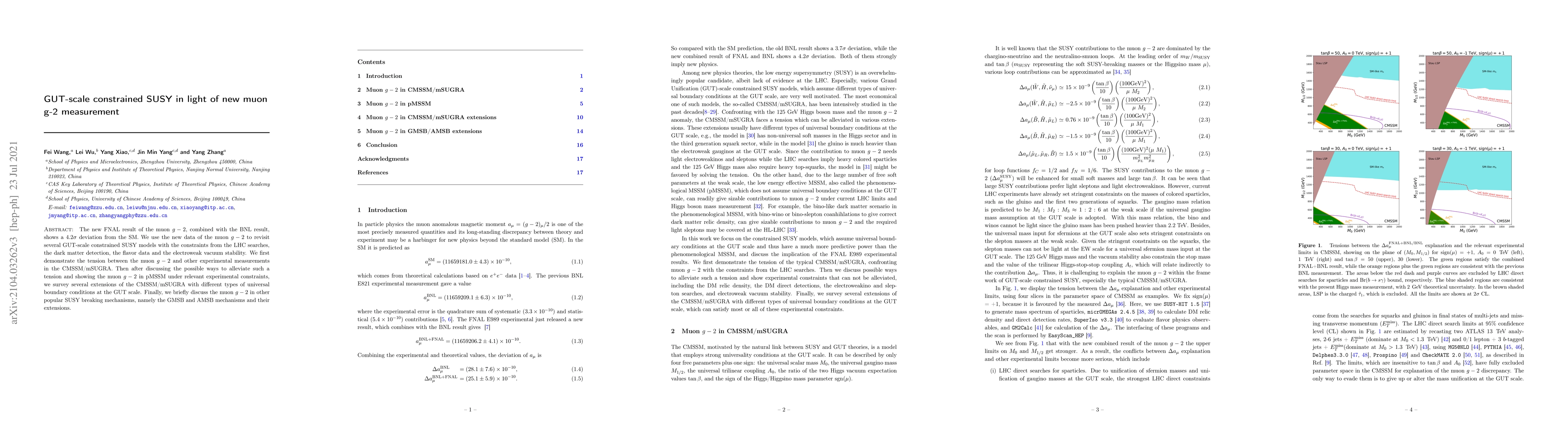 This paper examines GUT-scale constrained SUSY models in light of the new FNAL muon g-2 measurement, revealing a 4.2σ deviation from the Standard Model. It explores tensions between the muon g-2 and other experimental constraints, surveys various SUSY extensions to alleviate these tensions, and discusses implications for popular SUSY breaking mechanisms like GMSB and AMSB.
