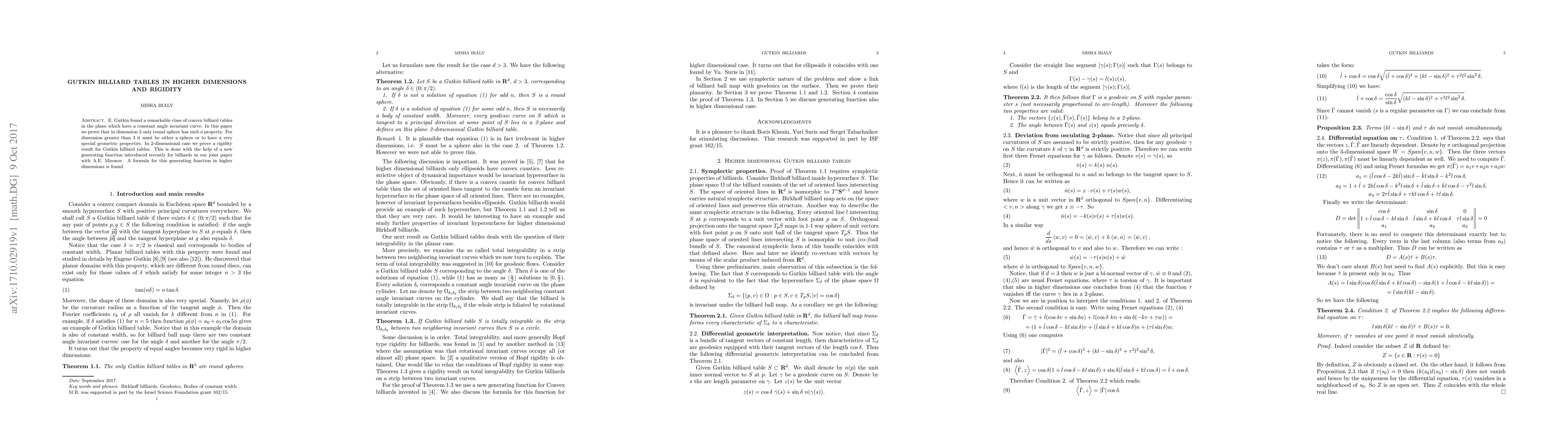 This paper explores Gutkin billiard tables, proving that in dimension 3 only a round sphere possesses a constant angle invariant curve, while in higher dimensions, such tables must either be a sphere or exhibit unique geometric properties. A rigidity result for 2-dimensional Gutkin billiards is established using a new generating function, with a formula for this function derived for higher dimensions.