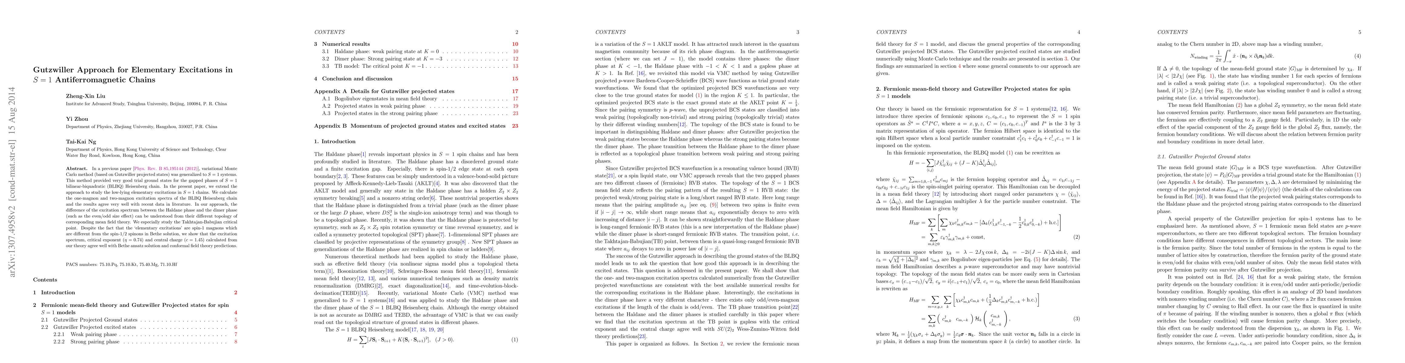 This paper extends the Gutzwiller approach to study low-lying elementary excitations in $S=1$ antiferromagnetic chains, calculating one-magnon and two-magnon spectra that align with recent literature. The study reveals the topological differences between Haldane and dimer phases, particularly at the Takhtajan-Babujian critical point, and shows agreement between the calculated excitation spectrum and critical exponents with Bethe ansatz and conformal field theory predictions.