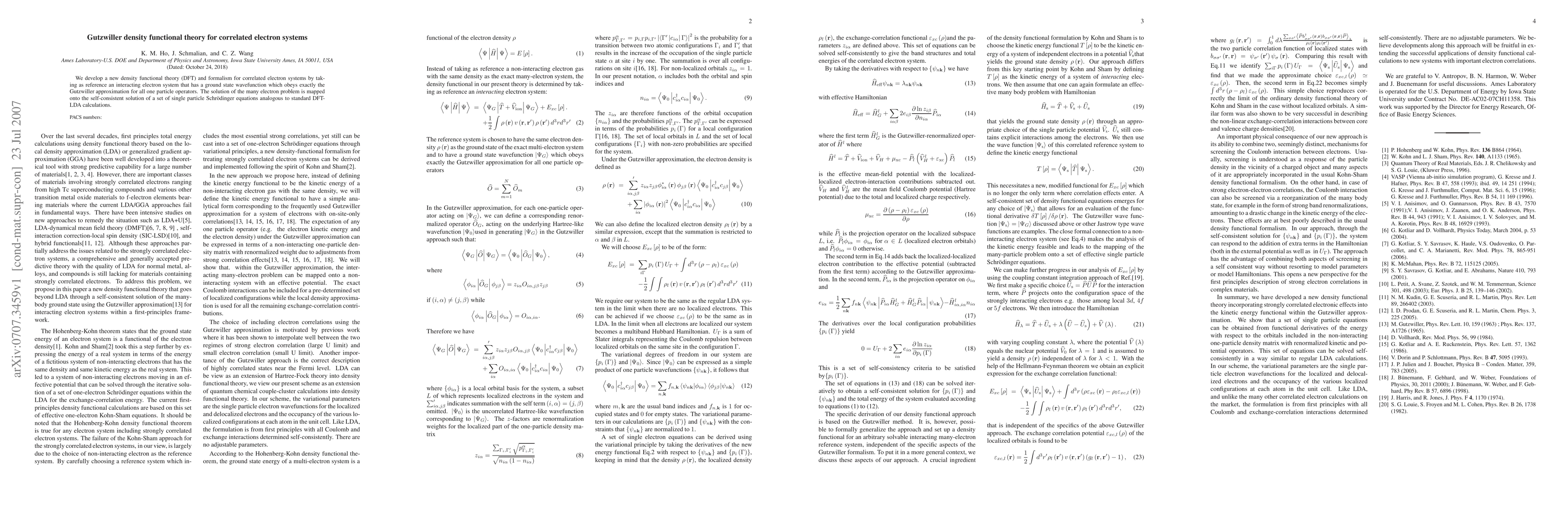 This paper introduces a novel density functional theory (DFT) approach for correlated electron systems, utilizing the Gutzwiller approximation as a reference, and reformulates the many-electron problem into self-consistent single particle Schrödinger equations akin to standard DFT-LDA calculations.