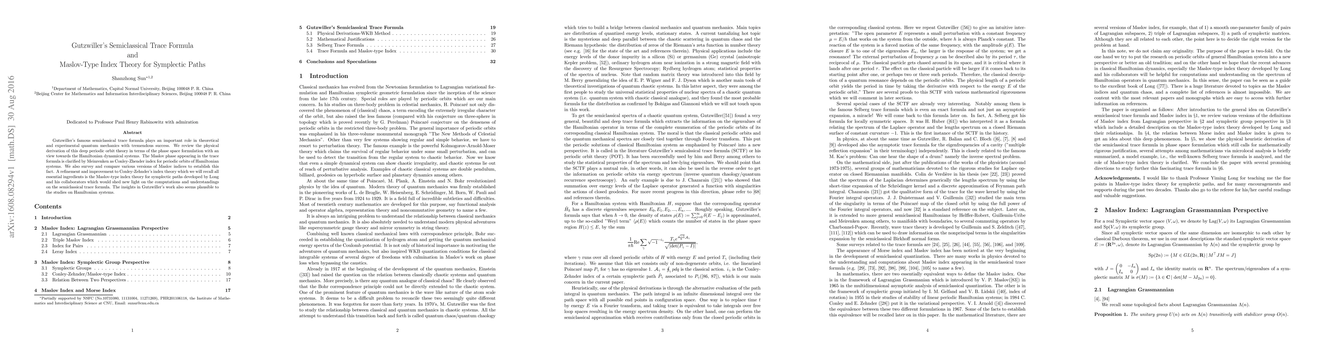 This paper reviews Gutzwiller's semiclassical trace formula, a key theory in quantum mechanics, and explores its derivation using Hamiltonian dynamics. It compares various Maslov indices, highlighting Long's Maslov-type index theory for symplectic paths as a refinement that enhances understanding of the trace formula in Hamiltonian systems.