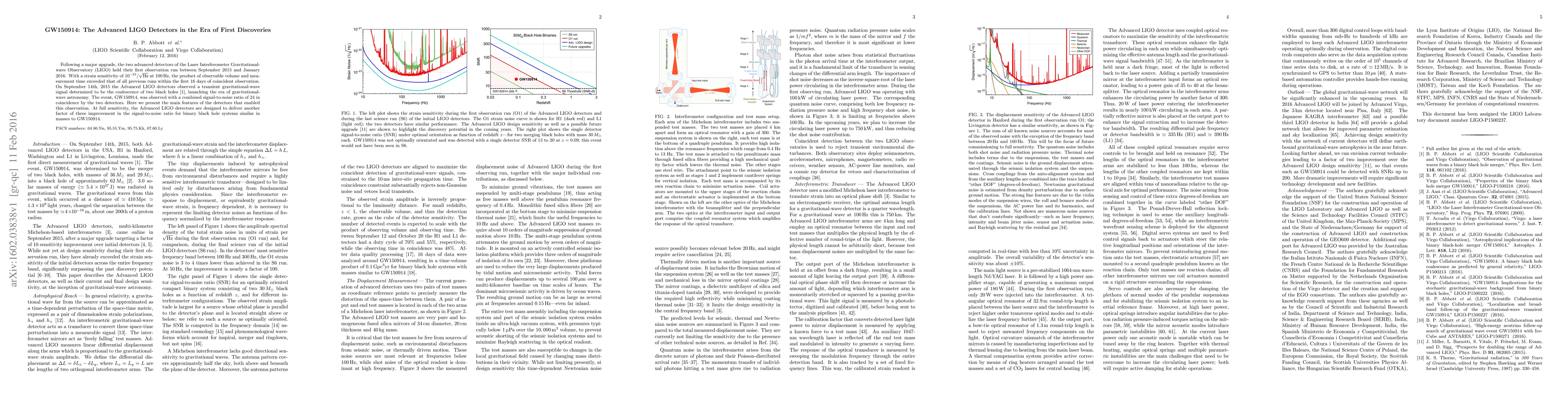 The Advanced LIGO detectors made their first gravitational-wave observation, GW150914, on September 14, 2015, marking the start of gravitational-wave astronomy. This detection was enabled by significant improvements in detector sensitivity, leading to a new era in the study of gravitational waves.