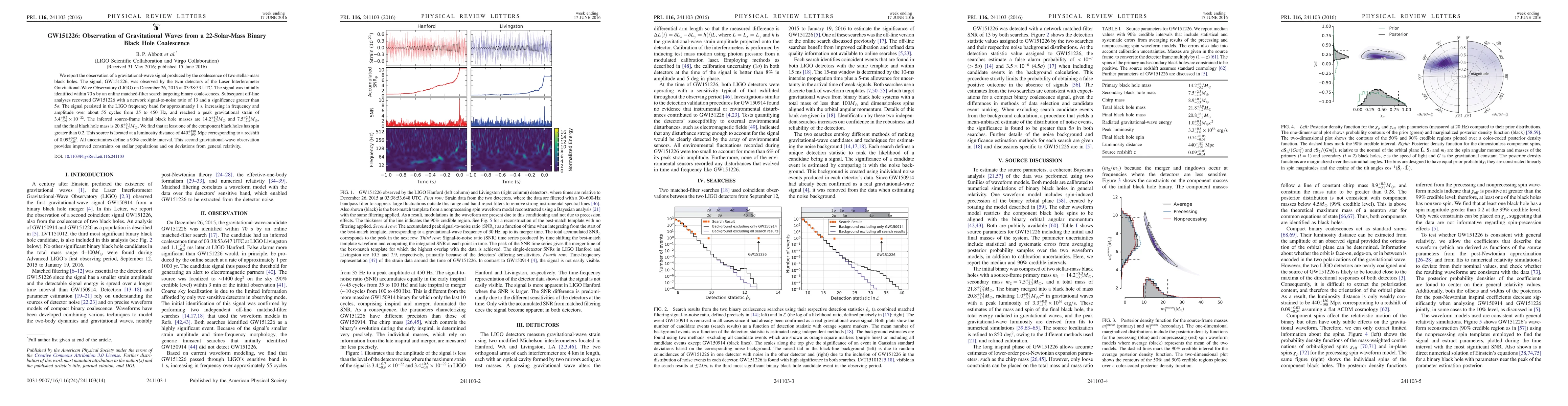 We report the observation of a gravitational-wave signal produced by the coalescence of two stellar-mass black holes. The signal, GW151226, was observed by the twin detectors of the Laser Interferometer Gravitational-Wave Observatory (LIGO) on December 26, 2015 at 03:38:53 UTC. The signal was initially identified within 70 s by an online matched-filter search targeting binary coalescences. Subsequent off-line analyses recovered GW151226 with a network signal-to-noise ratio of 13 and a significance greater than 5 $\sigma$. The signal persisted in the LIGO frequency band for approximately 1 s, increasing in frequency and amplitude over about 55 cycles from 35 to 450 Hz, and reached a peak gravitational strain of $3.4_{-0.9}^{+0.7} \times 10^{-22}$. The inferred source-frame initial black hole masses are $14.2_{-3.7}^{+8.3} M_{\odot}$ and $7.5_{-2.3}^{+2.3} M_{\odot}$ and the final black hole mass is $20.8_{-1.7}^{+6.1} M_{\odot}$. We find that at least one of the component black holes has spin greater than 0.2. This source is located at a luminosity distance of $440_{-190}^{+180}$ Mpc corresponding to a redshift $0.09_{-0.04}^{+0.03}$. All uncertainties define a 90 % credible interval. This second gravitational-wave observation provides improved constraints on stellar populations and on deviations from general relativity.