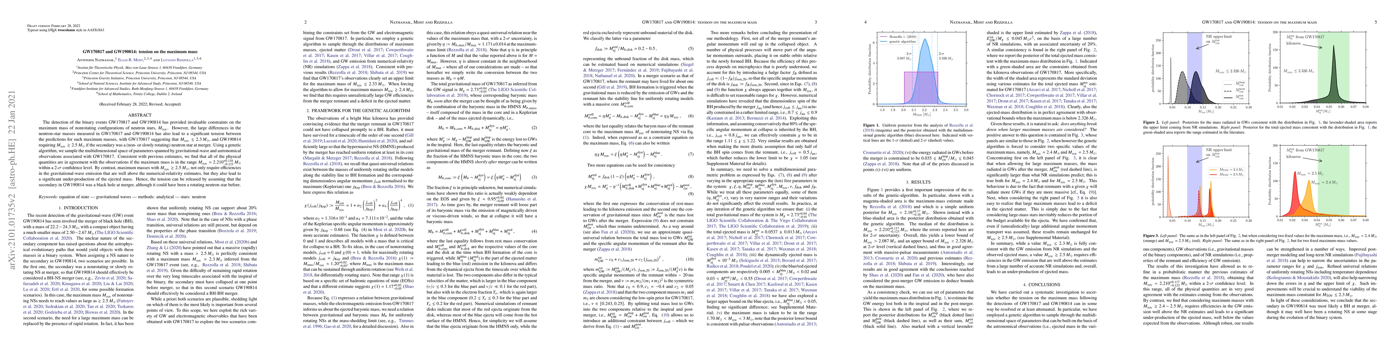 The paper discusses the tension between gravitational wave events GW170817 and GW190814 regarding the maximum mass of neutron stars, finding that GW170817 suggests a maximum mass of $M_{_{\rm TOV}} \lesssim 2.3\,M_{\odot}$, while GW190814 implies $M_{_{\rm TOV}} \gtrsim 2.5\,M_{\odot}$. The authors propose that the secondary in GW190814 was likely a black hole, resolving the tension.