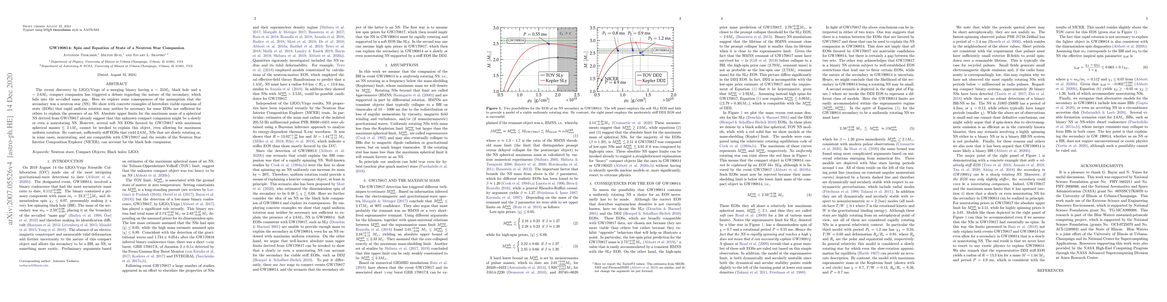 The recent discovery by LIGO/Virgo of a merging binary having a $\sim 23 M_\odot$ black hole and a $\sim 2.6 M_\odot$ compact companion has triggered a debate regarding the nature of the secondary, which falls into the so-called mass gap. Here we explore some consequences of the assumption that the secondary was a neutron star (NS). We show with concrete examples of heretofore viable equations of state (EOSs) that rapid uniform rotation may neither be necessary for some EOSs nor sufficient for others to explain the presence of a NS. Absolute upper limits for the maximum mass of a spherical NS derived from GW170817 already suggest that this unknown compact companion might be a slowly or even a nonrotating NS. However several soft NS EOSs favored by GW170817 with maximum spherical masses $\lesssim 2.1 M_\odot$ cannot be invoked to explain this object, even allowing for maximum uniform rotation. By contrast, sufficiently stiff EOSs that yield $2.6 M_\odot$ NSs which are slowly rotating or, in some cases, nonrotating, and are compatible with GW170817 and the results of NICER, can account for the black hole companion.