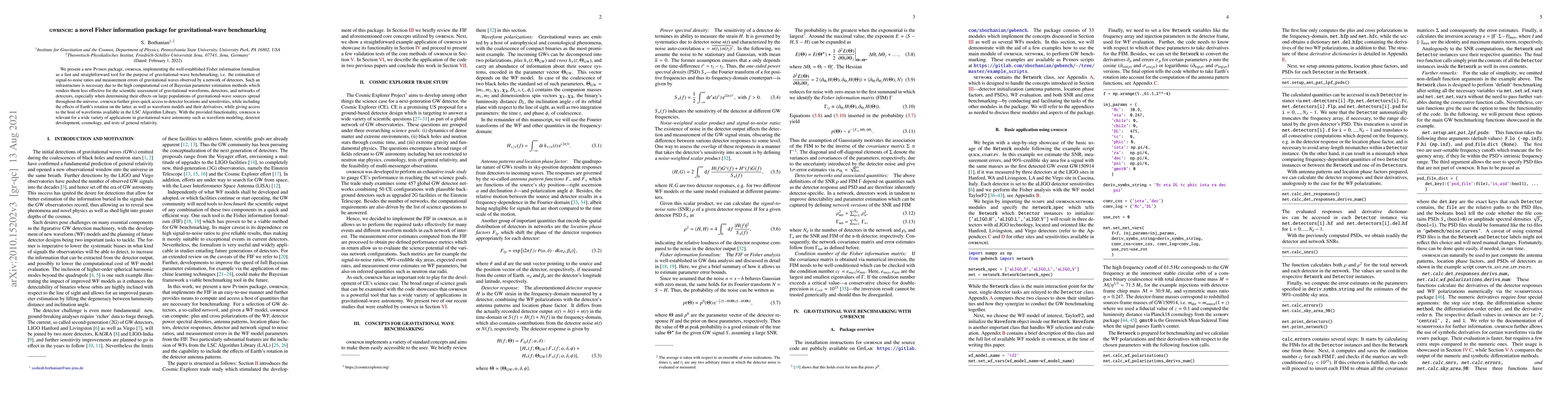 gwbench is a new Python package that implements the Fisher information formalism to efficiently benchmark gravitational-wave detectors, estimating signal-to-noise ratios and measurement errors. It provides fast access to detector sensitivities and waveform models, making it useful for applications in gravitational-wave astronomy, detector development, and cosmology.