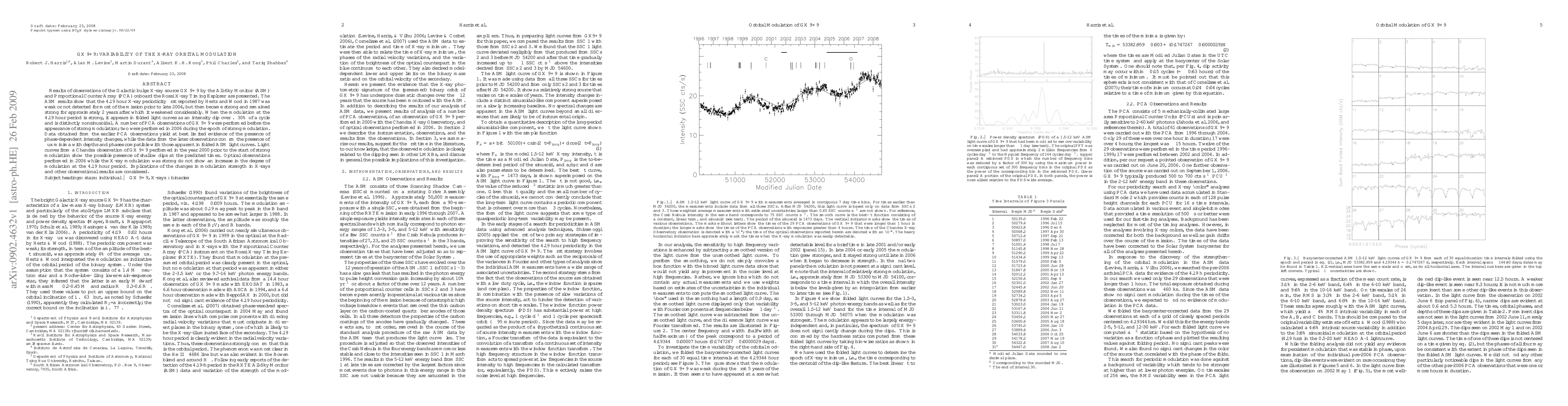Results of observations of the Galactic bulge X-ray source GX 9+9 by the All-Sky Monitor (ASM) and Proportional Counter Array (PCA) onboard the Rossi X-ray Timing Explorer are presented. The ASM results show that the 4.19 hour X-ray periodicity first reported by Hertz and Wood in 1987 was weak or not detected for most of the mission prior to late 2004, but then became strong and remained strong for approximately 2 years after which it weakened considerably. When the modulation at the 4.19 hour period is strong, it appears in folded light curves as an intensity dip over slightly less than 30% of a cycle and is distinctly nonsinusoidal. A number of PCA observations of GX 9+9 were performed before the appearance of strong modulation; two were performed in 2006 during the epoch of strong modulation. Data obtained from the earlier PCA observations yield at best limited evidence of the presence of phase-dependent intensity changes, while the data from the later observations confirm the presence of flux minima with depths and phases compatible with those apparent in folded ASM light curves. Light curves from a Chandra observation of GX 9+9 performed in the year 2000 prior to the start of strong modulation show the possible presence of shallow dips at the predicted times. Optical observations performed in 2006 while the X-ray modulation was strong do not show an increase in the degree of modulation at the 4.19 hour period. Implications of the changes in modulation strength in X-rays and other observational results are considered.