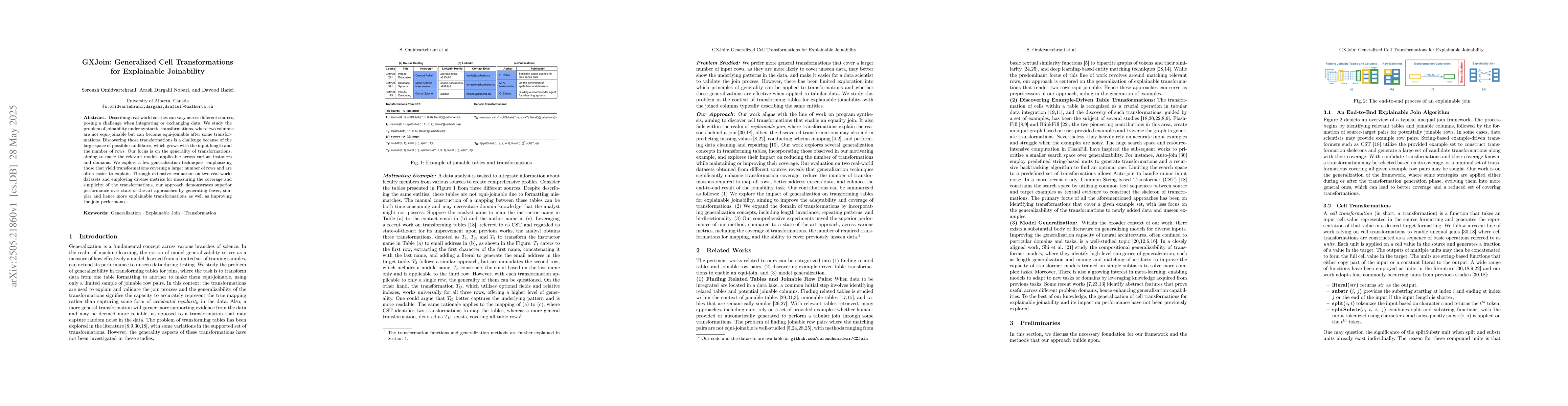 The introduction of GXJoin, a framework for generalized cell transformations that generates simpler, more explainable transformations for enhancing joinability.