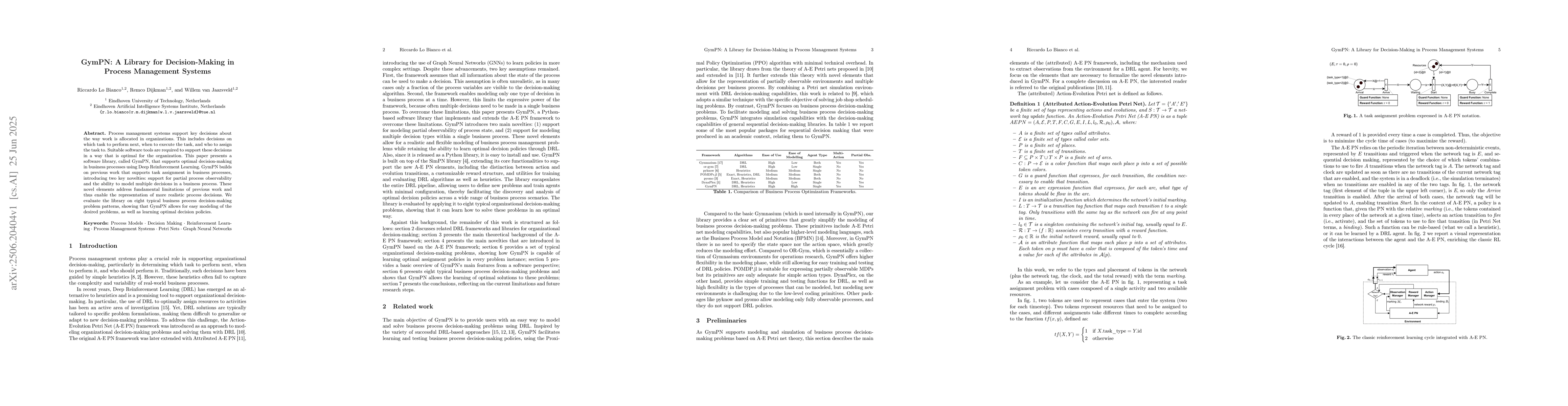 Process management systems support key decisions about the way work is allocated in organizations. This includes decisions on which task to perform next, when to execute the task, and who to assign the task to. Suitable software tools are required to support these decisions in a way that is optimal for the organization. This paper presents a software library, called GymPN, that supports optimal decision-making in business processes using Deep Reinforcement Learning. GymPN builds on previous work that supports task assignment in business processes, introducing two key novelties: support for partial process observability and the ability to model multiple decisions in a business process. These novel elements address fundamental limitations of previous work and thus enable the representation of more realistic process decisions. We evaluate the library on eight typical business process decision-making problem patterns, showing that GymPN allows for easy modeling of the desired problems, as well as learning optimal decision policies.