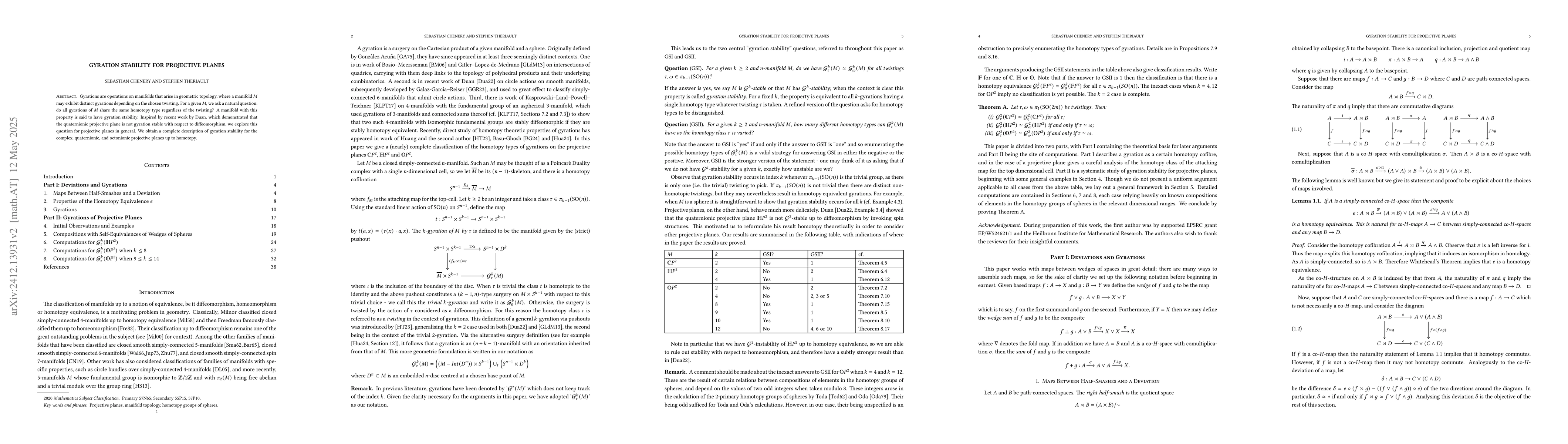 This paper investigates whether projective planes maintain the same homotopy type across different gyrations, termed gyration stability. It concludes with a comprehensive analysis of gyration stability for complex, quaternionic, and octonionic projective planes up to homotopy, extending prior work on the quaternionic case.