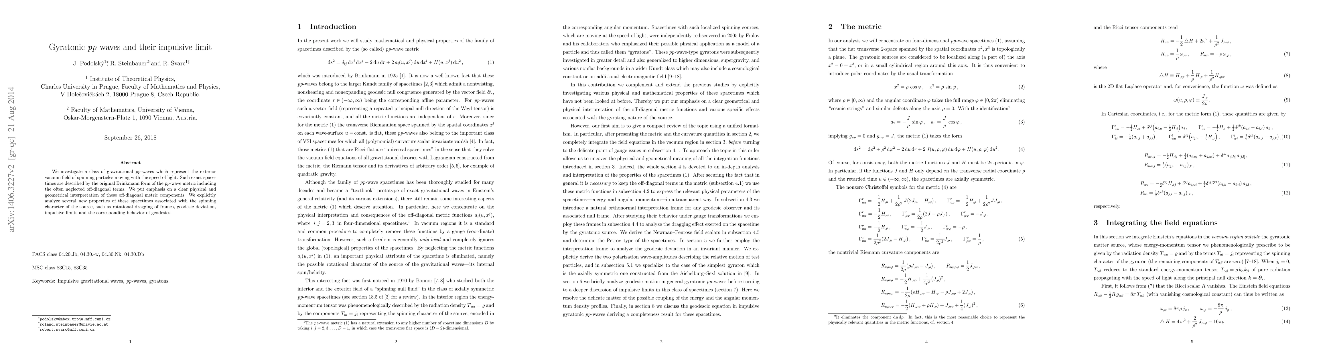 Researchers studied gravitational waves from spinning particles moving at light speed, focusing on a new class of spacetimes that include neglected terms, and found properties like rotational dragging and impulsive limits.