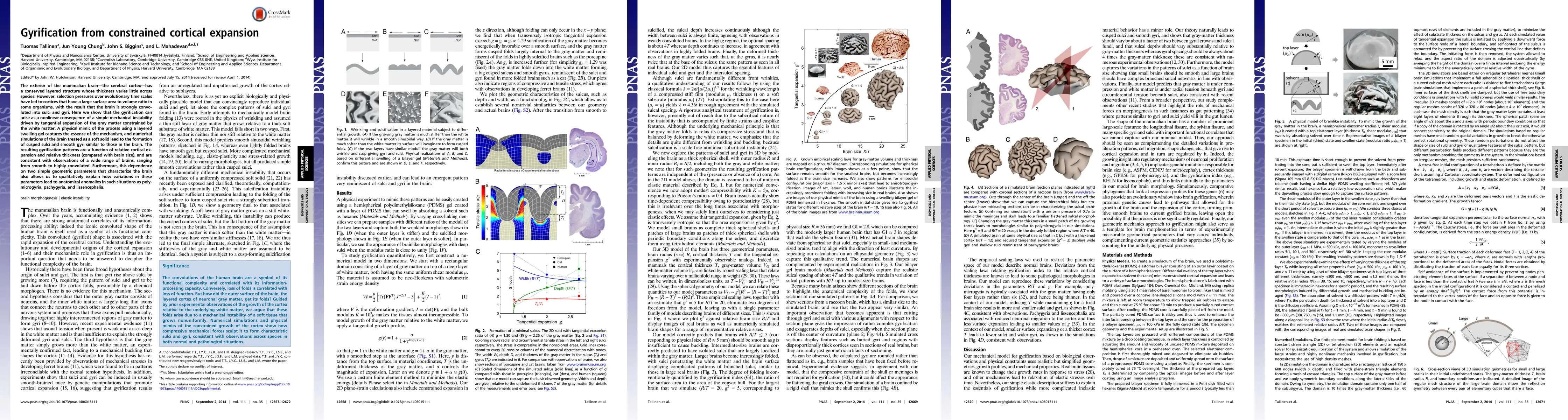 Researchers show that brain gyrification, a key feature of cerebral cortex structure, can arise from simple mechanical instability driven by gray matter expansion; this process leads to varying degrees of convoluted brain surfaces.