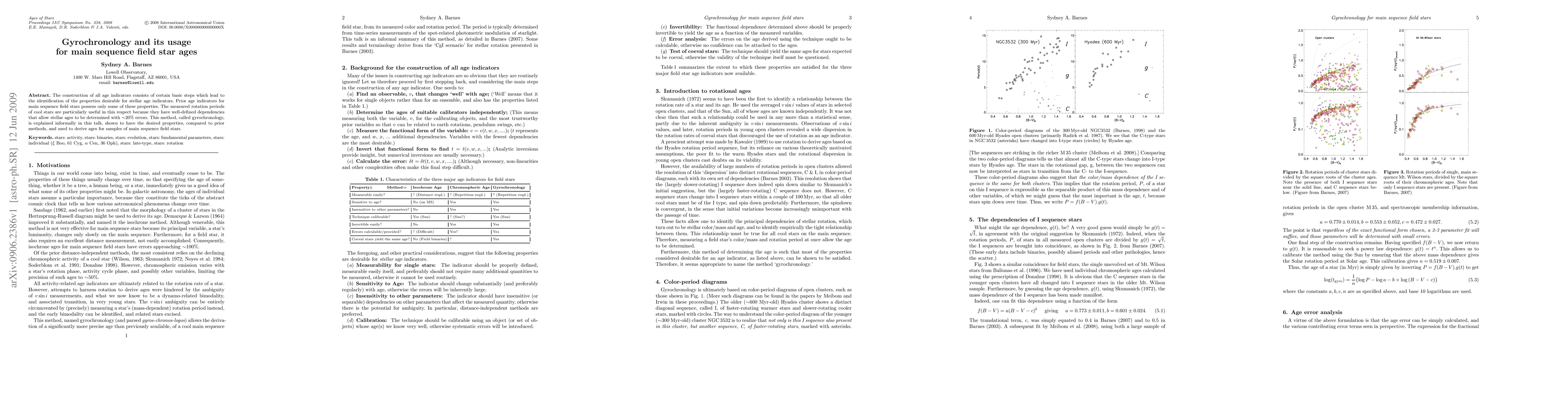This paper discusses gyrochronology, a method using rotation periods of cool stars to estimate their ages with ~20% accuracy, and compares it favorably to previous age-determination techniques for main sequence field stars. The method's well-defined dependencies make it a reliable indicator of stellar age.