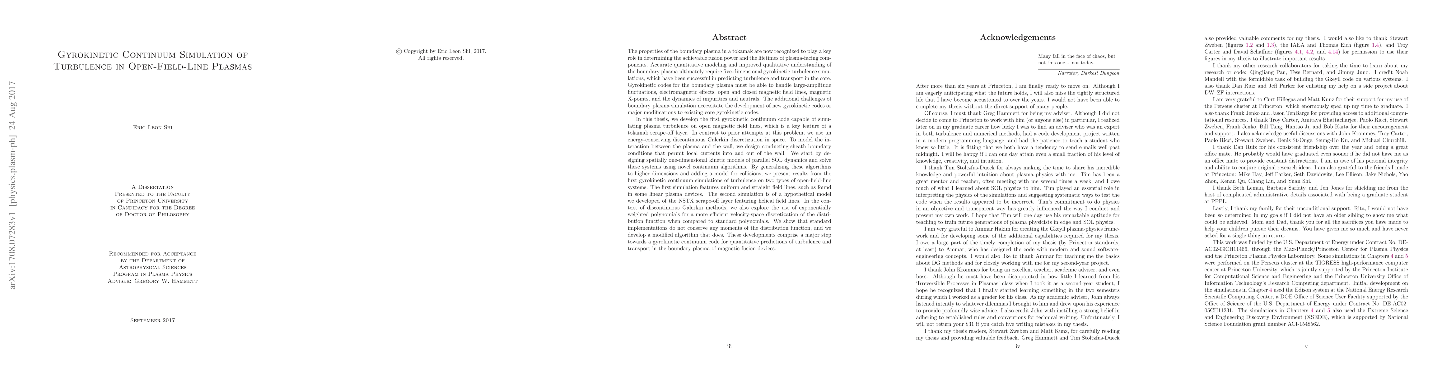The properties of the boundary plasma in a tokamak are now recognized to play a key role in determining the achievable fusion power and the lifetimes of plasma-facing components. Accurate quantitative modeling and improved qualitative understanding of the boundary plasma ultimately require five-dimensional gyrokinetic turbulence simulations, which have been successful in predicting turbulence and transport in the core. The additional challenges of boundary-plasma simulation necessitate the development of new gyrokinetic codes or major modifications to existing core gyrokinetic codes. In this thesis, we develop the first gyrokinetic continuum code capable of simulating plasma turbulence on open magnetic field lines, which is a key feature of a tokamak scrape-off layer. In contrast to prior attempts at this problem, we use an energy-conserving discontinuous Galerkin discretization in space. To model the interaction between the plasma and the wall, we design conducting-sheath boundary conditions that permit local currents into and out of the wall. We start by designing spatially one-dimensional kinetic models of parallel SOL dynamics and solve these systems using novel continuum algorithms. By generalizing these algorithms to higher dimensions and adding a model for collisions, we present results from the first gyrokinetic continuum simulations of turbulence on two types of open-field-line systems. The first simulation features uniform and straight field lines, such as found in some linear plasma devices. The second simulation is of a hypothetical model we developed of the NSTX scrape-off layer featuring helical field lines. These developments comprise a major step towards a gyrokinetic continuum code for quantitative predictions of turbulence and transport in the boundary plasma of magnetic fusion devices.