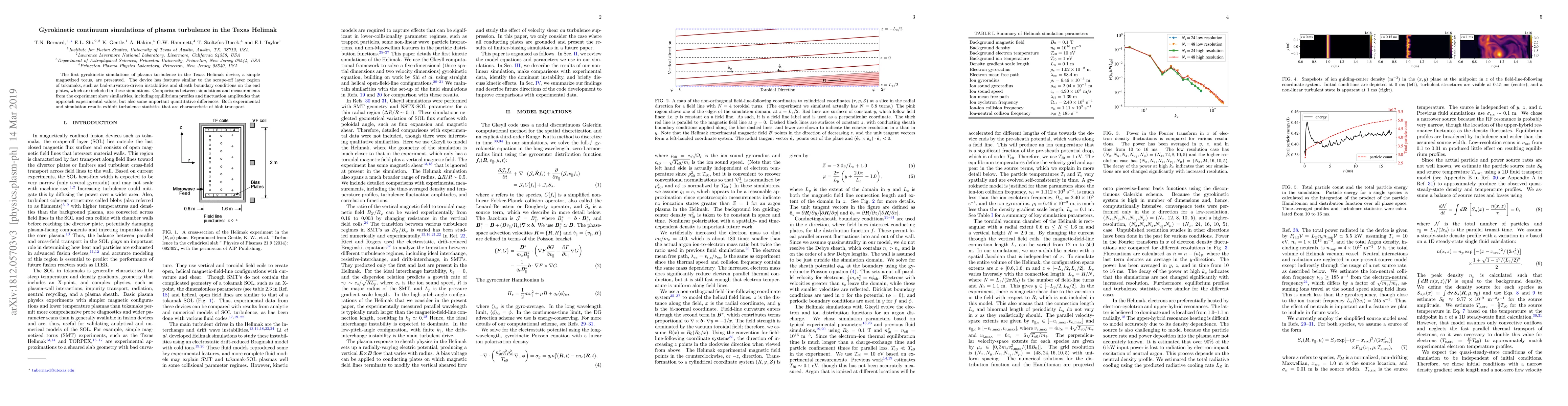 This paper presents the first gyrokinetic simulations of plasma turbulence in the Texas Helimak device, showing similarities to experimental measurements in terms of equilibrium profiles and fluctuation amplitudes, though with some quantitative discrepancies. Both simulations and experiments exhibit turbulence statistics indicative of blob transport.