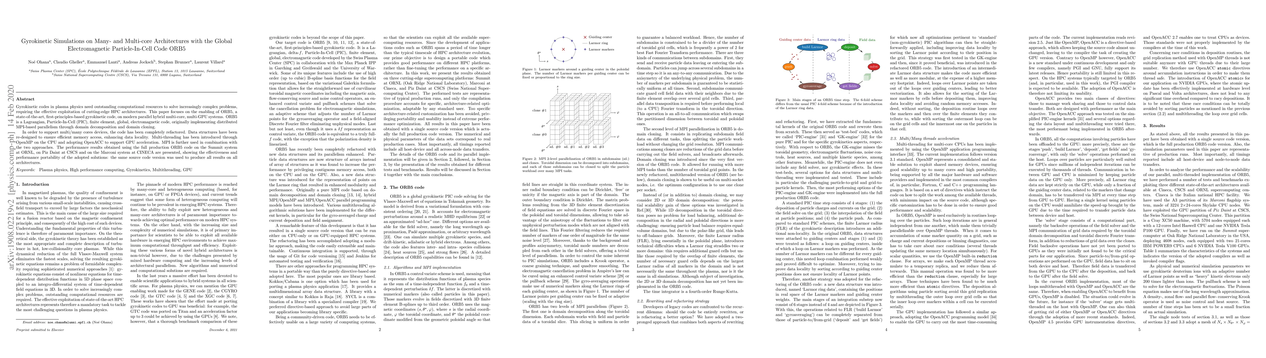 This paper describes the optimization of ORB5, a gyrokinetic plasma physics code, for high-performance computing on modern multi-core and multi-GPU architectures. The code has been refactored for efficient memory access and utilizes OpenMP for multi-threading on CPUs and OpenACC for GPU acceleration, alongside MPI support, demonstrating effective performance on various HPC systems.