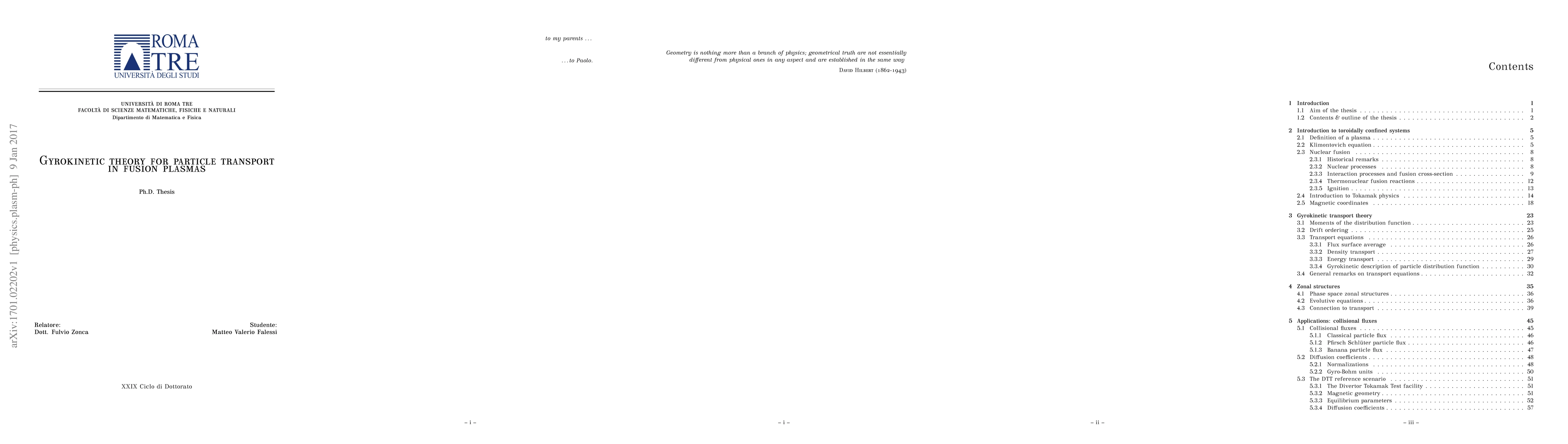 Predicting the dynamics of a thermonuclear plasma during a magnetic confinement experiment is fundamental in order to make nuclear fusion a reliable source of energy. The development of a set of equations describing the plasma evolution on a given time scale is the main requirement to reach this goal. A limited amount of works have studied in a self-consistent way collisional transport and fluctuation induced transport. The motivation of this work stems from the fundamental importance of the self-consistency of the adopted description in order to understand transport processes on the energy confinement (transport) time scale because of the mutual interaction between collisions and turbulence. In turn, this is crucial in order to predict fluxes of particle and energy and, ultimately, the overall plasma evolution. Using flux coordinates and the drift ordering we derive a set of evolutions equations for the number of particles and the energy density on the transport time scale. These equations show the interplay between collisions and fluctuations and, in particular, show that fluctuations may enhance collisional transport while the collisions can damp long lived structures formed by saturated instabilities, i.e zonal structures. Fluctuation induced fluxes are described using gyrokinetic field theory, which makes a comparison with the theory of phase space zonal structures possible, revealing that the fluctuations induced part of the transport equations can be obtained by taking the proper moment of the long length scale limit of the equation governing the evolution of phase space zonal structures. Finally, we show that plasma nonlinear evolution can yield to structures formation that are characterized by mesoscales, intermediate between the typical ones of plasma turbulence and those of the reference plasma equilibrium.