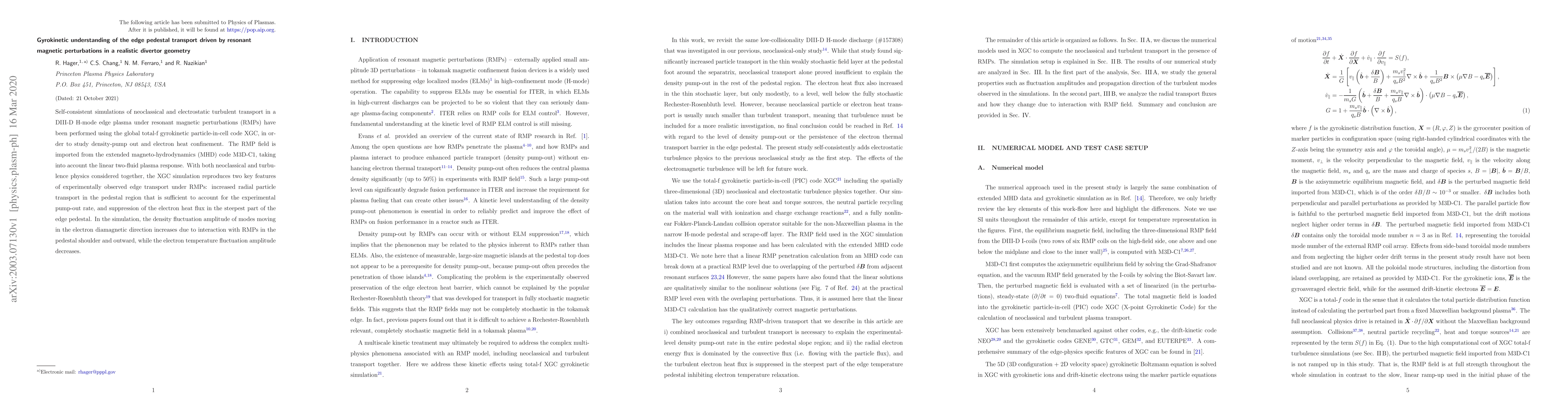 This paper uses gyrokinetic simulations to study the impact of resonant magnetic perturbations (RMPs) on the edge pedestal transport in a DIII-D H-mode plasma, showing increased radial particle transport and suppression of electron heat flux, consistent with experimental observations. The RMP field is integrated from M3D-C1, and the results indicate that RMPs enhance density fluctuations while reducing electron temperature fluctuations.