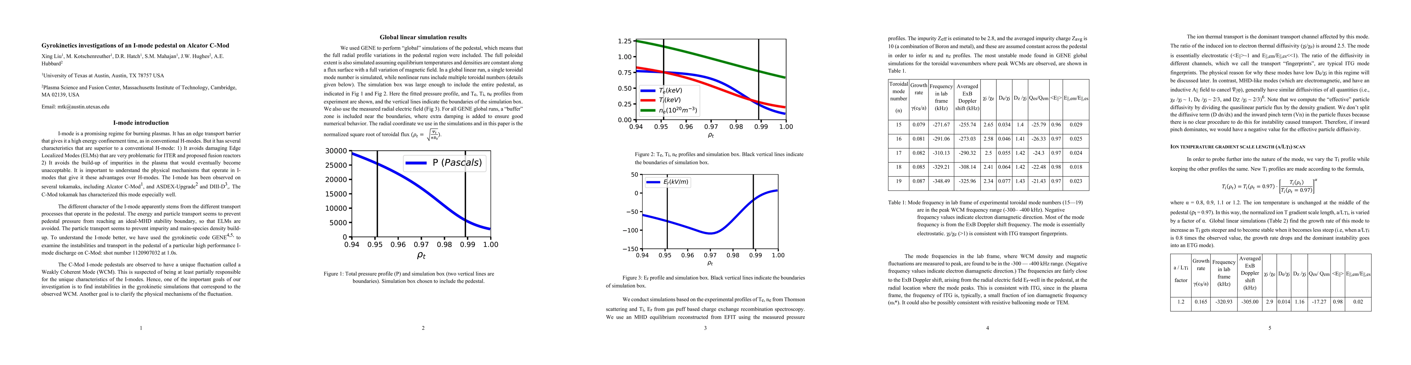 This study uses gyrokinetic simulations to investigate I-mode pedestals in Alcator C-Mod, identifying the Weakly Coherent Mode as an electrostatic ITG/Impurity mode. Nonlinear ETG simulations accurately match experimental heat flux within error bars, while varying impurity levels and profiles show their impact on fluctuations and transport.