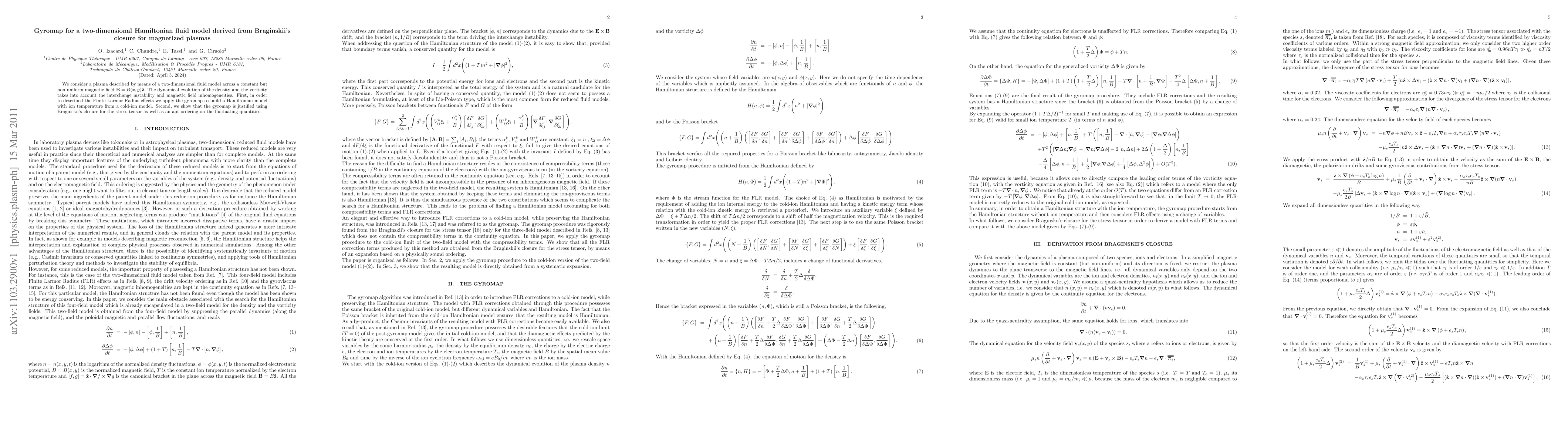 We consider a plasma described by means of a two-dimensional fluid model across a constant but non-uniform magnetic field $\mathbf{B} = B(x,y) \mathbf{\hat{z}}$. The dynamical evolution of the density and the vorticity takes into account the interchange instability and magnetic field inhomogeneities. First, in order to described the Finite Larmor Radius effects we apply the gyromap to build a Hamiltonian model with ion temperature from a cold-ion model. Second, we show that the gyromap is justified using Braginskii's closure for the stress tensor as well as an apt ordering on the fluctuating quantities.