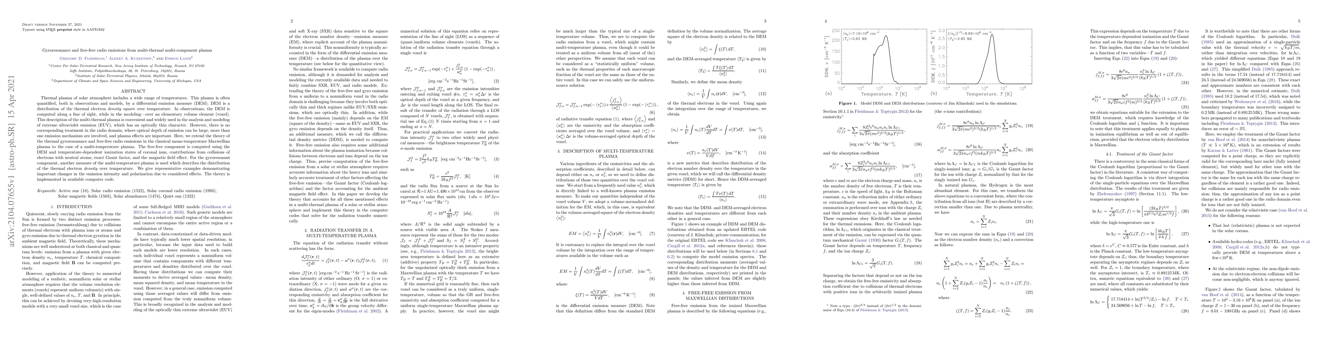 This paper extends the theory of gyroresonance and free-free radio emissions to multi-temperature plasmas, incorporating the differential emission measure (DEM) and multi-component plasma effects. The study demonstrates significant changes in emission intensity and polarization due to these effects.