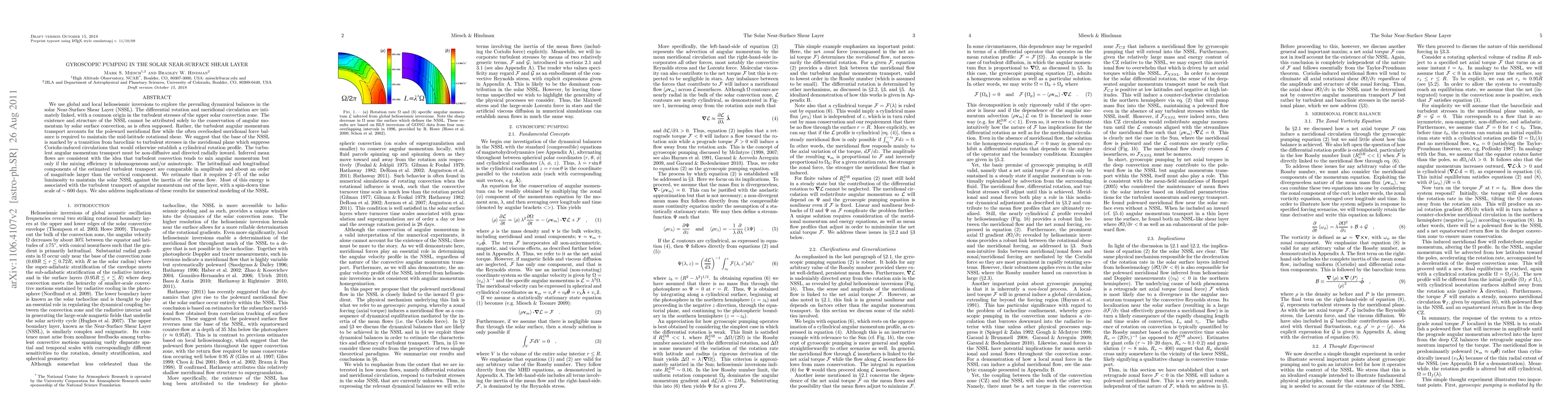 The paper presents a detailed analysis of the solar NSSL's dynamics, highlighting the role of turbulent angular momentum transport and meridional force balance in maintaining the layer's structure.