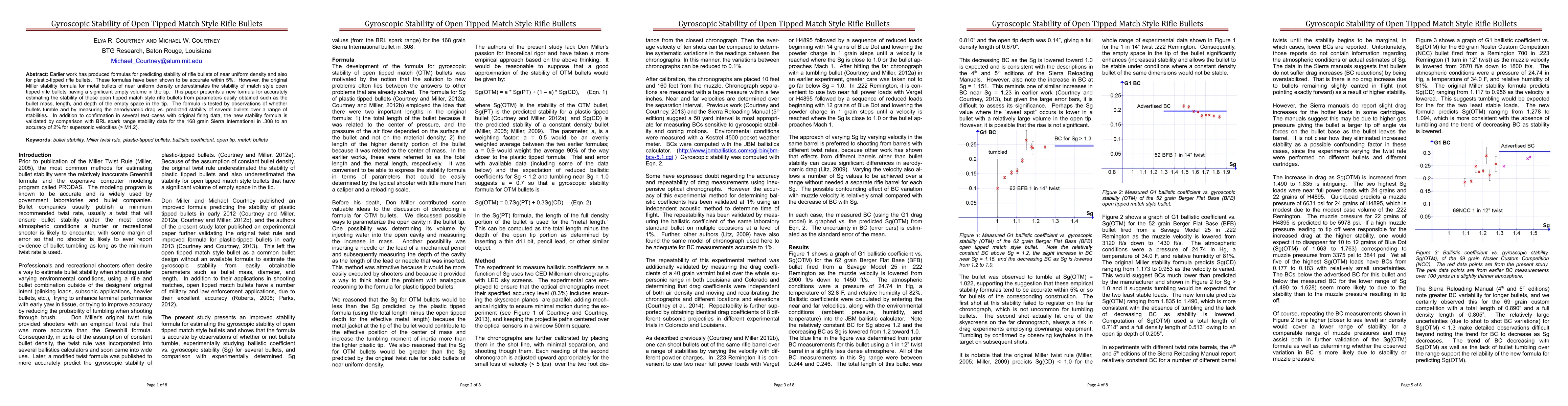 A new formula for predicting stability of open-tipped match style rifle bullets has been developed to correct an underestimation in a previous formula, offering accurate predictions within 2%.