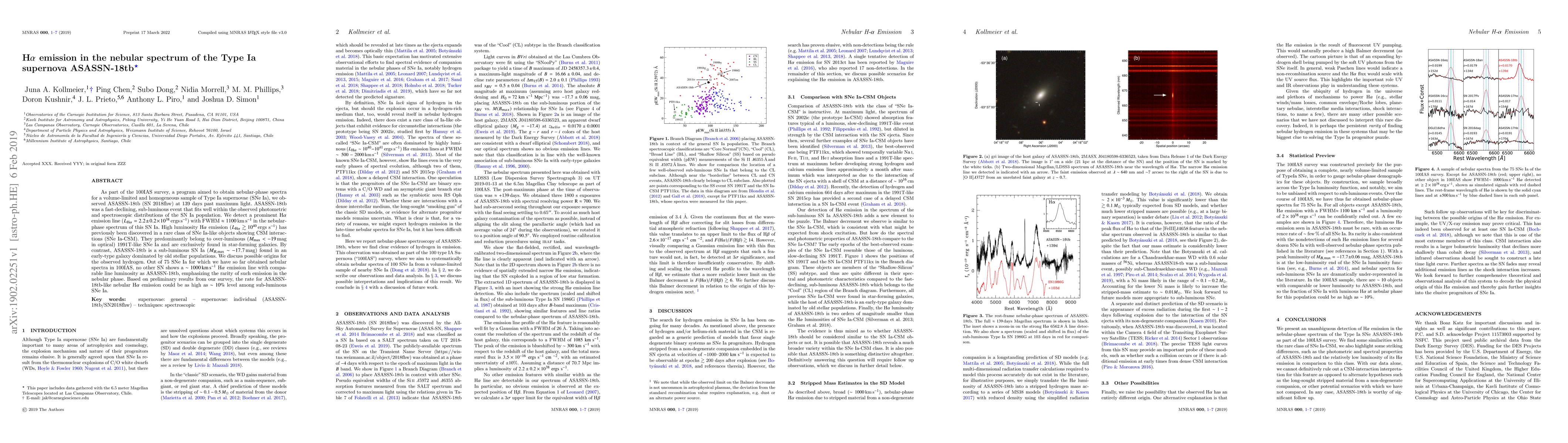 A Type Ia supernova called ASASSN-18tb shows rare H-alpha emission with high luminosity, setting a new record for such emission in the nebular phase of SNe Ia.