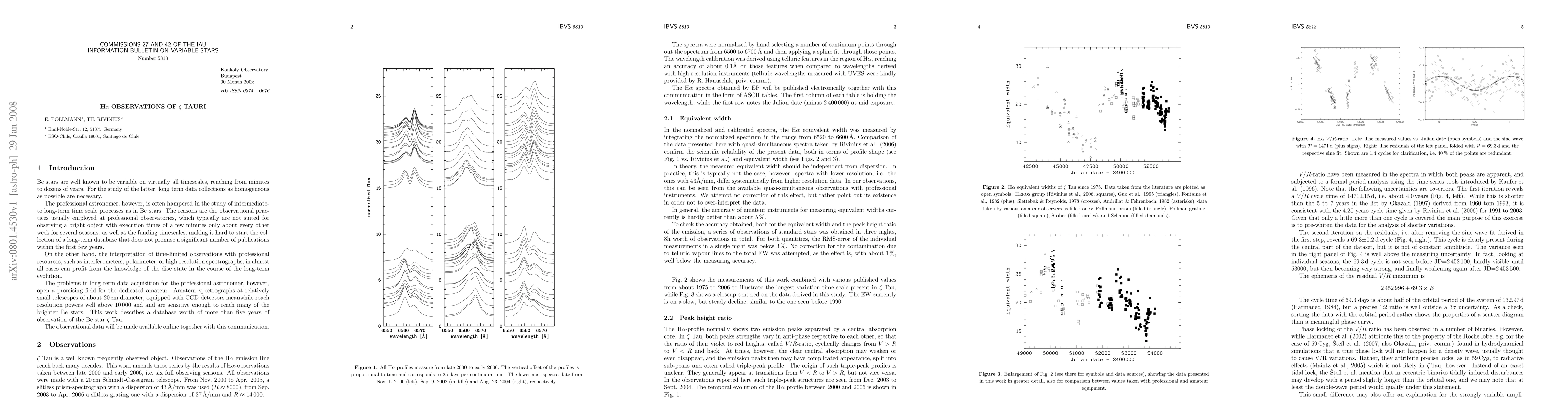 The paper presents H-alpha observations of zeta Tauri from 2000 to 2006, revealing an intermediate timescale of approximately 69 days in the V/R variations of the Halpha line. These findings extend the long-term monitoring of the star's disk state.