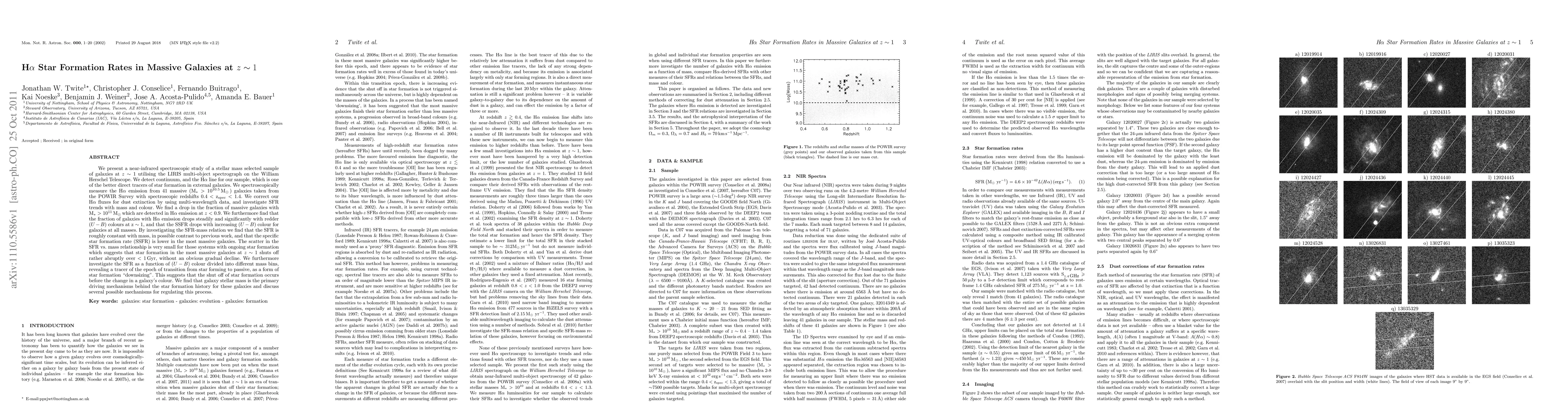 This study uses near-infrared spectroscopy to measure H alpha emission in massive galaxies at z~1, finding a decline in star formation rates (SFR) in the most massive galaxies and a correlation with galaxy colour. The study suggests that star formation shuts off abruptly in these galaxies, driven primarily by stellar mass.
