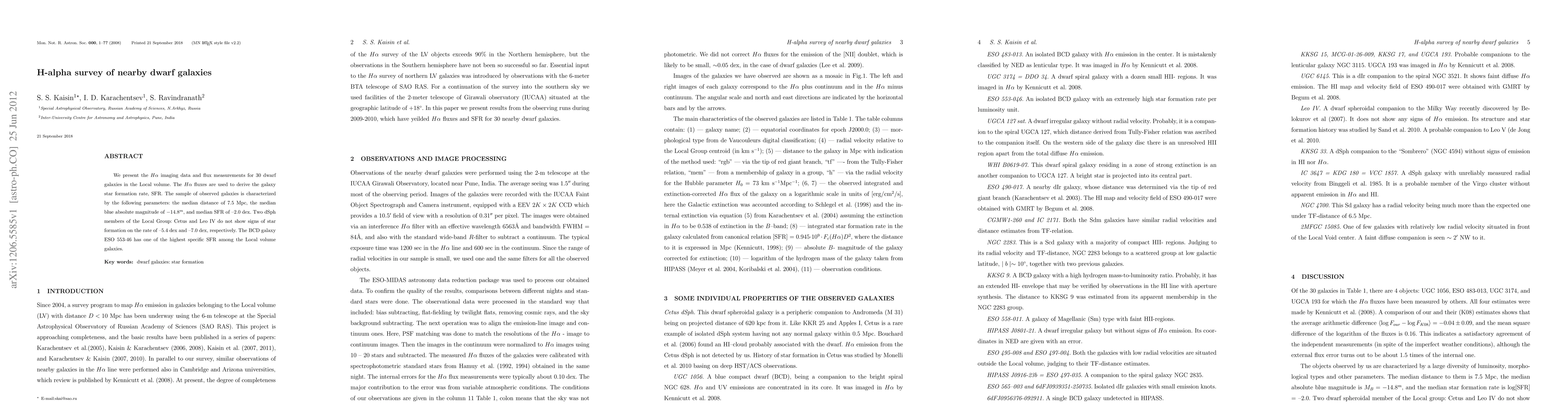We present the H-alpha imaging data and flux measurements for 30 dwarf galaxies in the Local volume. The H-alpha fluxes are used to derive the galaxy star formation rate, SFR. The sample of observed galaxies is characterized by the following parameters: the median distance of 7.5 Mpc, the median blue absolute magnitude of -14.8 mag, and median SFR of -2.0 dex. Two dSph members of the Local Group: Cetus and Leo IV do not show signs of star formation on the rate of -5.4 dex and -7.0 dex, respectively. The BCD galaxy ESO 553-46 has one of the highest specific SFR among the Local volume galaxies.