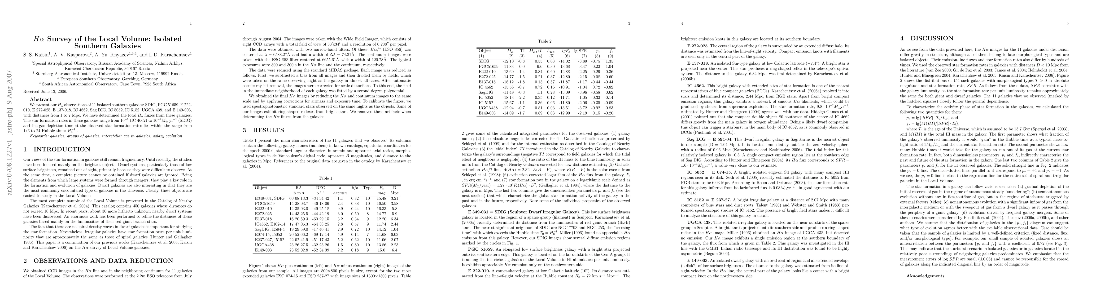 This study presents H-alpha observations of 11 isolated southern galaxies, determining their total H-alpha fluxes and star formation rates ranging from 10^{-1} to 10^{-4} solar masses per year. Gas depletion times vary from 1/6 to 24 Hubble times.