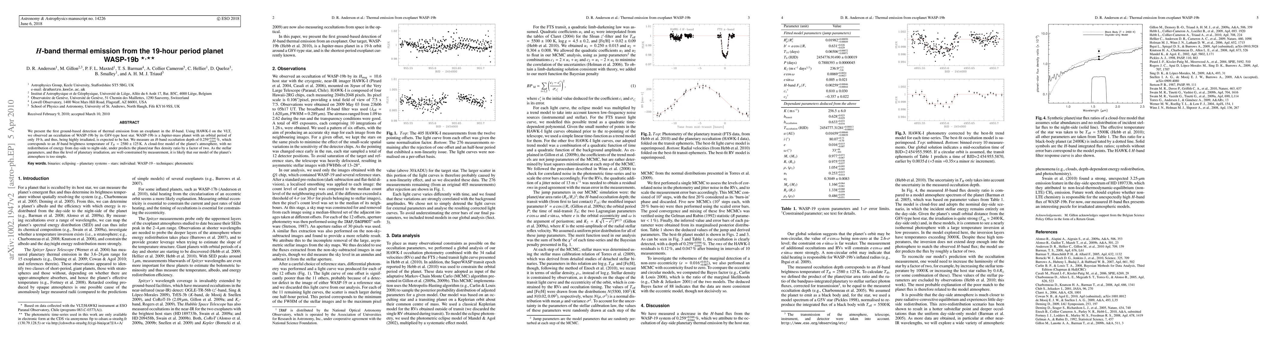 This study reports the first ground-based detection of H-band thermal emission from the highly irradiated 19-hour period planet WASP-19b, measuring an H-band brightness temperature of 2580 K. A cloud-free atmospheric model underpredicts the observed thermal emission, suggesting a more complex atmospheric dynamics than currently modeled.