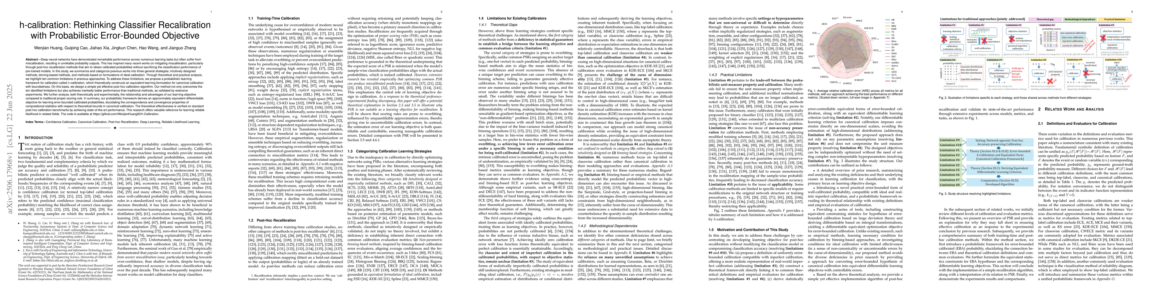 Deep neural networks have demonstrated remarkable performance across numerous learning tasks but often suffer from miscalibration, resulting in unreliable probability outputs. This has inspired many recent works on mitigating miscalibration, particularly through post-hoc recalibration methods that aim to obtain calibrated probabilities without sacrificing the classification performance of pre-trained models. In this study, we summarize and categorize previous works into three general strategies: intuitively designed methods, binning-based methods, and methods based on formulations of ideal calibration. Through theoretical and practical analysis, we highlight ten common limitations in previous approaches. To address these limitations, we propose a probabilistic learning framework for calibration called h-calibration, which theoretically constructs an equivalent learning formulation for canonical calibration with boundedness. On this basis, we design a simple yet effective post-hoc calibration algorithm. Our method not only overcomes the ten identified limitations but also achieves markedly better performance than traditional methods, as validated by extensive experiments. We further analyze, both theoretically and experimentally, the relationship and advantages of our learning objective compared to traditional proper scoring rule. In summary, our probabilistic framework derives an approximately equivalent differentiable objective for learning error-bounded calibrated probabilities, elucidating the correspondence and convergence properties of computational statistics with respect to theoretical bounds in canonical calibration. The theoretical effectiveness is verified on standard post-hoc calibration benchmarks by achieving state-of-the-art performance. This research offers valuable reference for learning reliable likelihood in related fields.