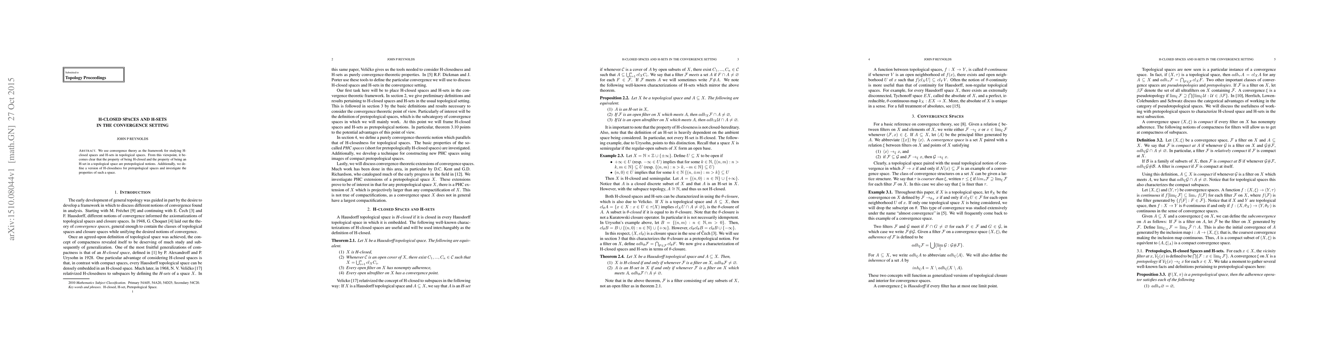This paper explores H-closed spaces and H-sets within the framework of convergence theory in topological spaces, establishing them as pretopological notions. It also extends the concept of H-closedness to pretopological spaces and examines their properties.
