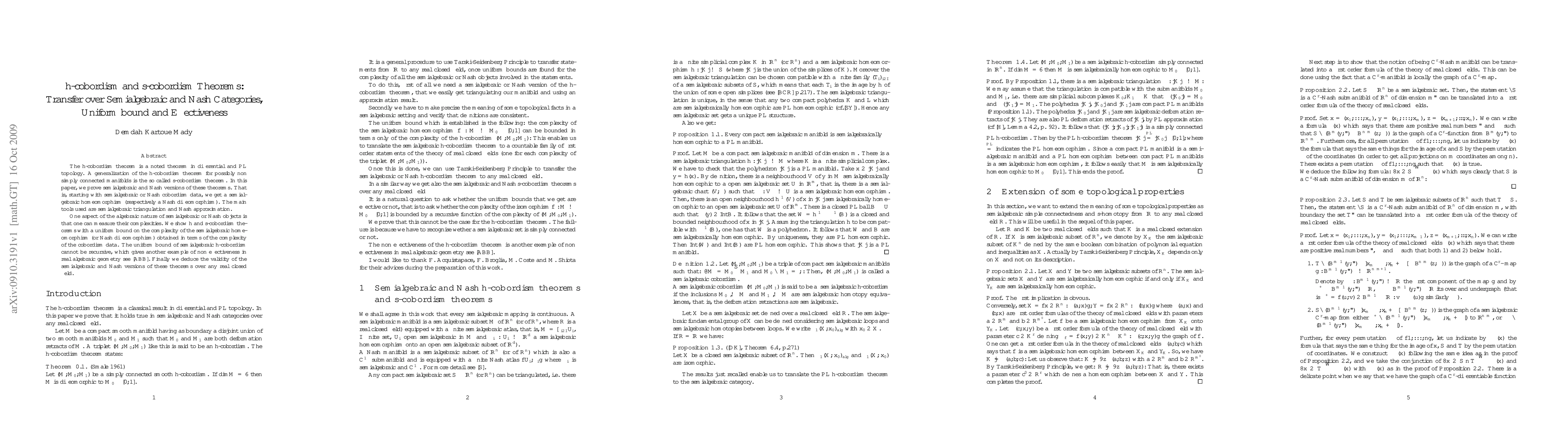 This paper extends the h-cobordism and s-cobordism theorems to semialgebraic and Nash categories, providing uniform bounds on the complexity of the resulting homeomorphisms or diffeomorphisms. It highlights the non-recursive nature of the uniform bound in semialgebraic h-cobordism, illustrating a limitation in effectiveness within real algebraic geometry.