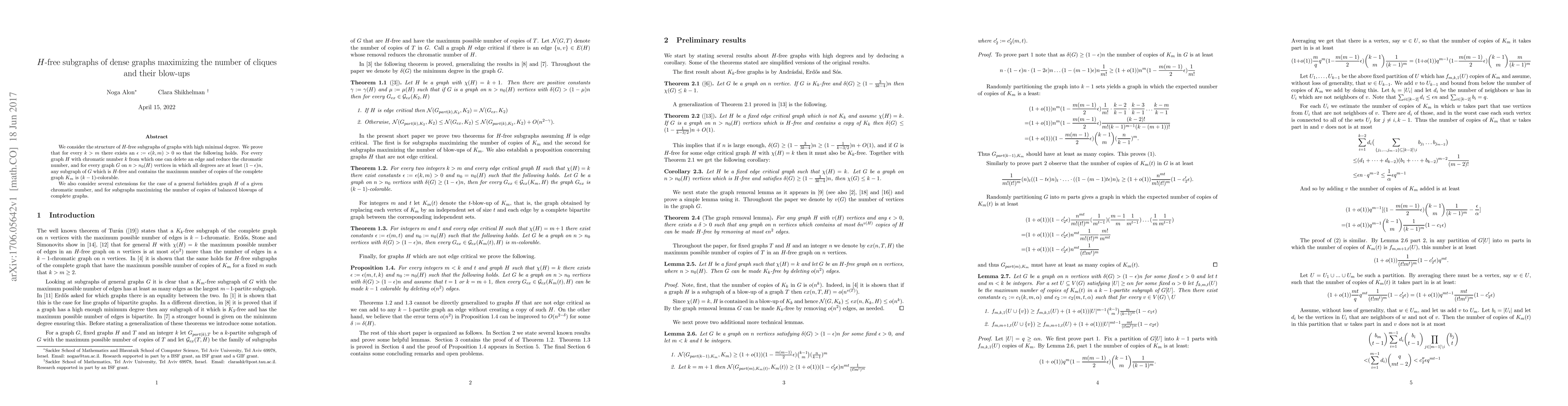 We consider the structure of $H$-free subgraphs of graphs with high minimal degree. We prove that for every $k>m$ there exists an $\epsilon:=\epsilon(k,m)>0$ so that the following holds. For every graph $H$ with chromatic number $k$ from which one can delete an edge and reduce the chromatic number, and for every graph $G$ on $n>n_0(H)$ vertices in which all degrees are at least $(1-\epsilon)n$, any subgraph of $G$ which is $H$-free and contains the maximum number of copies of the complete graph $K_m$ is $(k-1)$-colorable. We also consider several extensions for the case of a general forbidden graph $H$ of a given chromatic number, and for subgraphs maximizing the number of copies of balanced blowups of complete graphs.