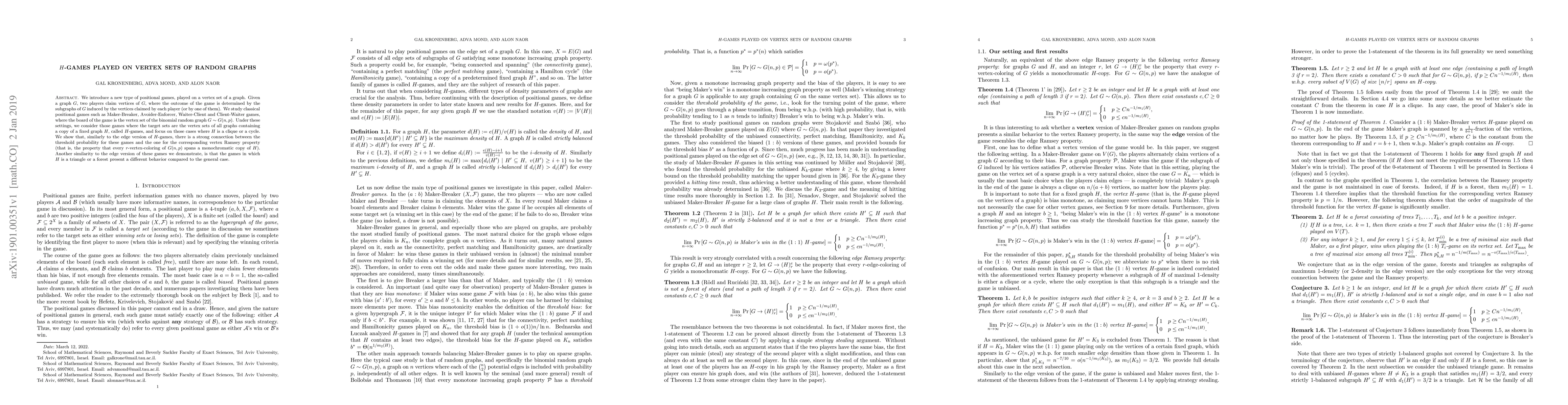 This paper introduces $H$-games played on vertex sets of random graphs, focusing on Maker-Breaker, Avoider-Enforcer, and similar games on $G(n,p)$. It establishes a connection between the threshold probability for these games and the vertex Ramsey property, showing distinct behaviors when $H$ is a triangle or forest compared to other structures like cliques or cycles.