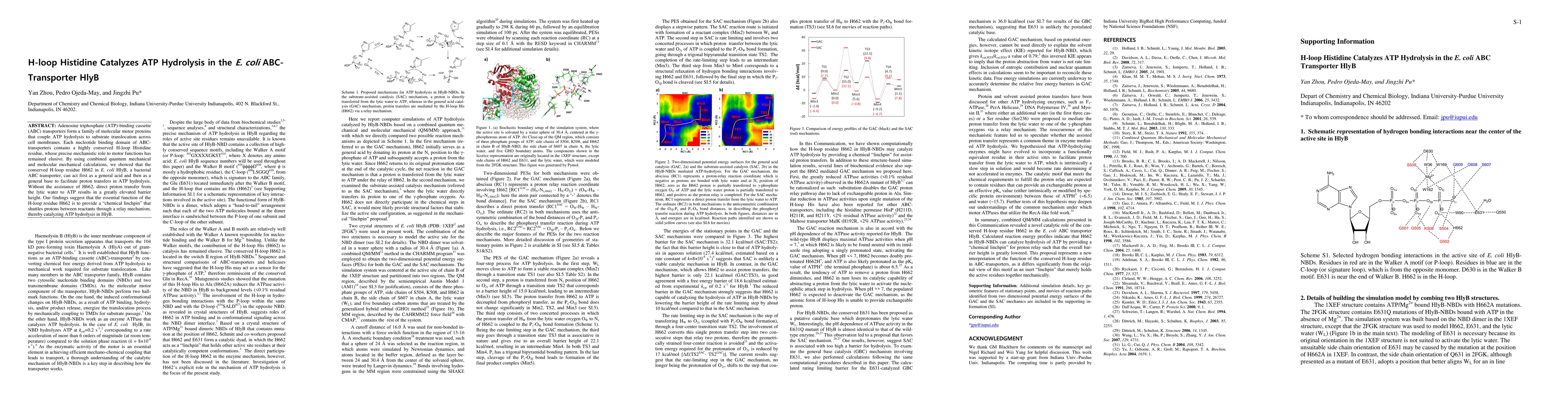 A study reveals that a specific histidine residue in an E. coli ABC-transporter plays a crucial role in catalyzing ATP hydrolysis by facilitating proton transfers, lowering the barrier height for direct proton transfer.