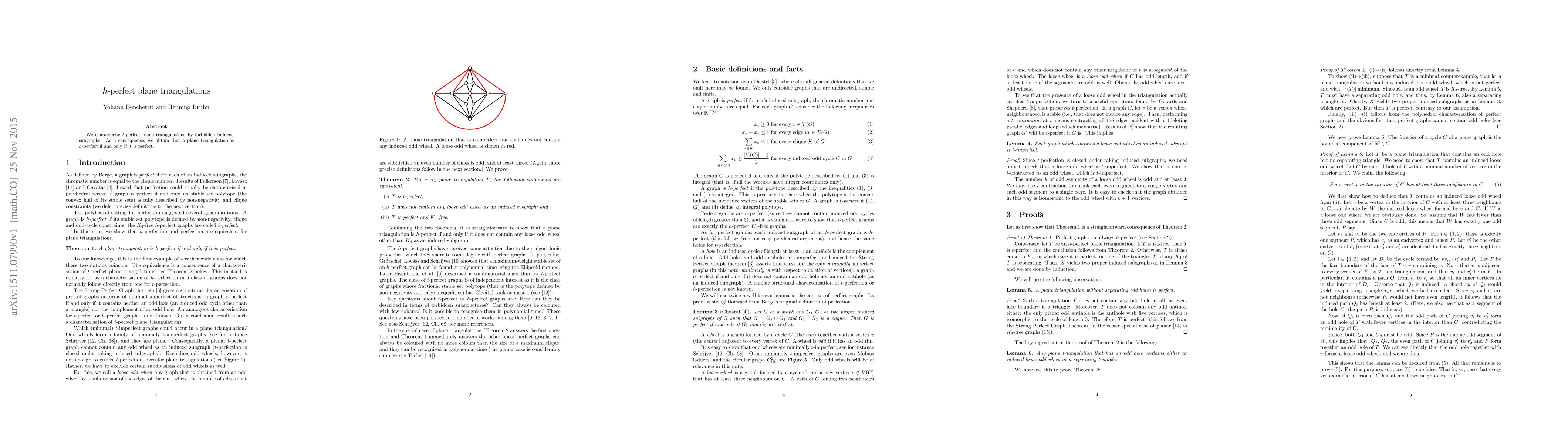 We characterise $t$-perfect plane triangulations by forbidden induced subgraphs. As a consequence, we obtain that a plane triangulation is $h$-perfect if and only if it is perfect.