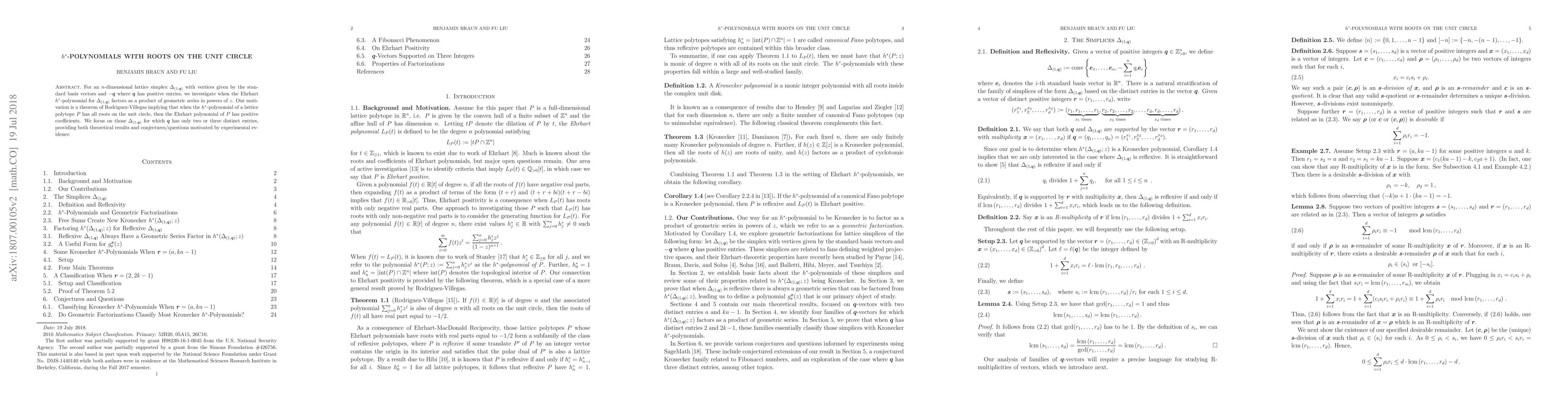 The paper investigates when the Ehrhart $h^*$-polynomial for a specific lattice simplex $\Delta_{(1,\mathbf{q})}$ factors as a product of geometric series in powers of $z$, focusing on cases where $\mathbf{q}$ has only two or three distinct entries.