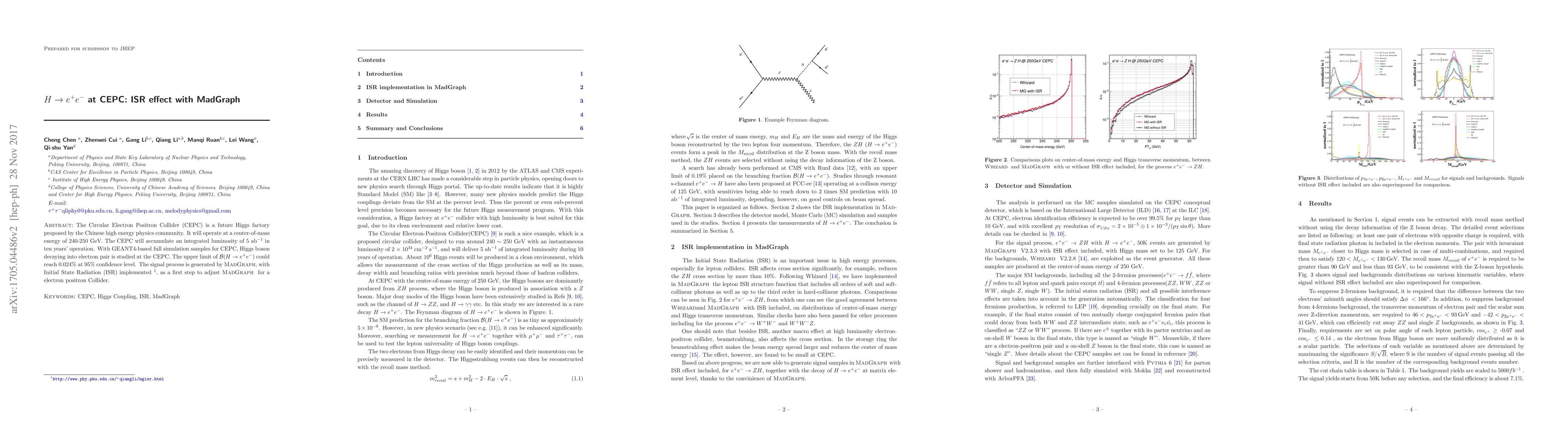 The CEPC proposes a future Higgs factory with 240-250 GeV center-of-mass energy, aiming to set an upper limit of ${ ext{B}}(H ightarrow e^+ e^-)$ at 0.024% confidence.