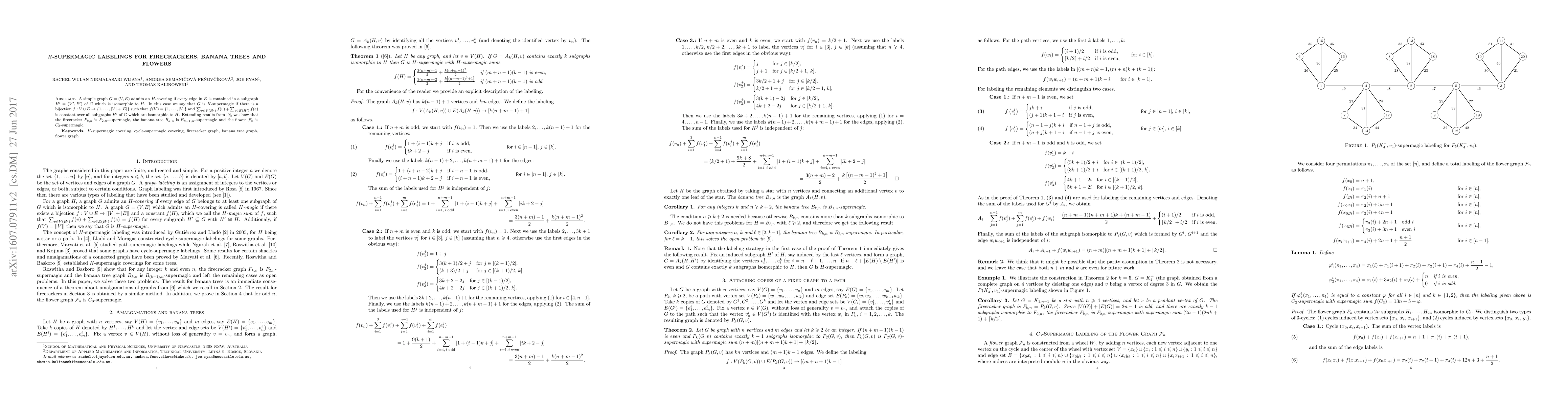 The paper proves that certain graphs, including firecrackers, banana trees, and flowers, have a specific property called $H$-supermagic labelings when labeled with specific values, which has implications for graph theory and potential applications in coding and computer science.