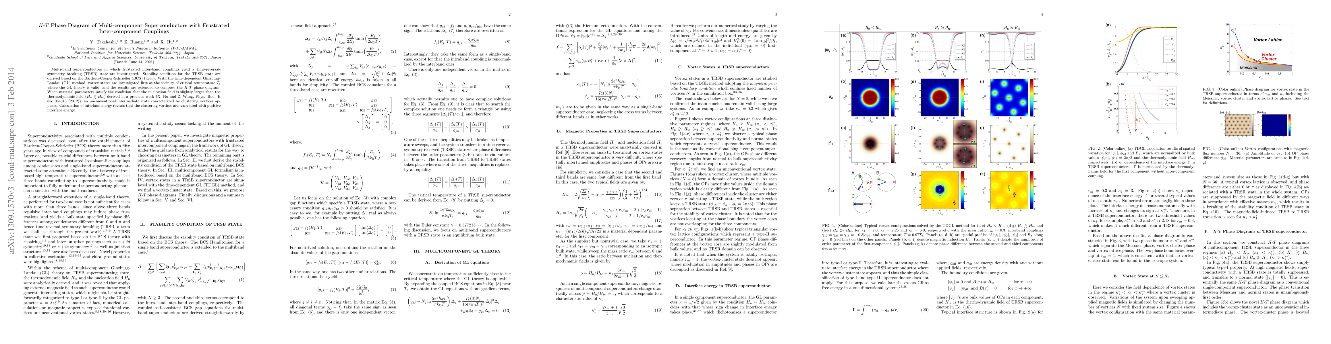 This paper derives stability conditions for time-reversal-symmetry breaking (TRSB) states in multi-band superconductors using BCS theory and explores vortex states via the time-dependent Ginzburg-Landau method, resulting in an $H$-$T$ phase diagram with an unconventional intermediate state characterized by vortex clustering.