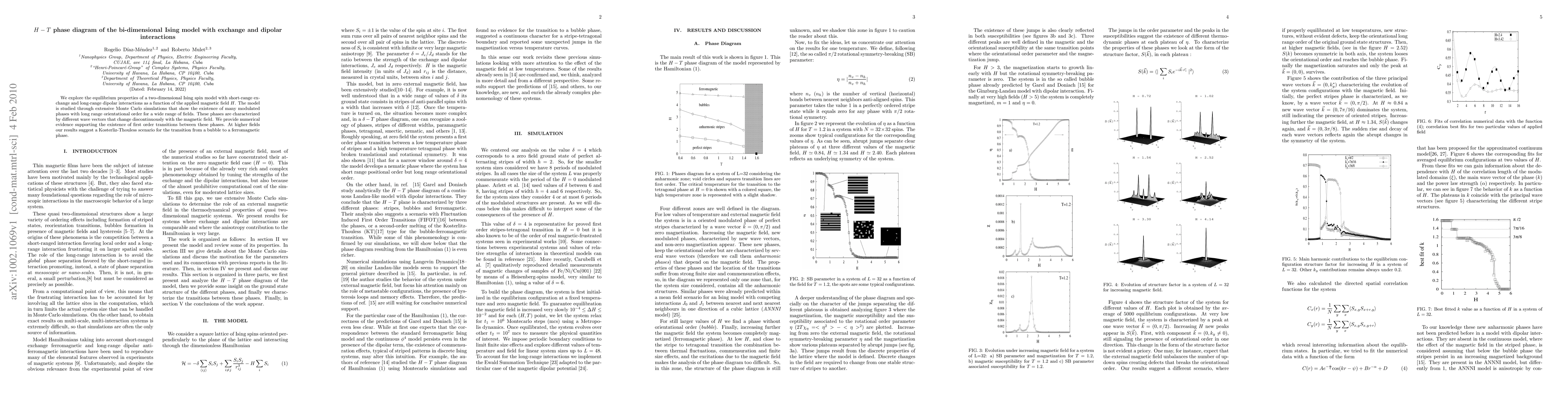 This paper investigates the H-T phase diagram of a 2D Ising model with both exchange and dipolar interactions, revealing multiple modulated phases with first-order transitions and suggesting a Kosterlitz-Thouless transition at higher fields. Monte Carlo simulations underpin the findings.