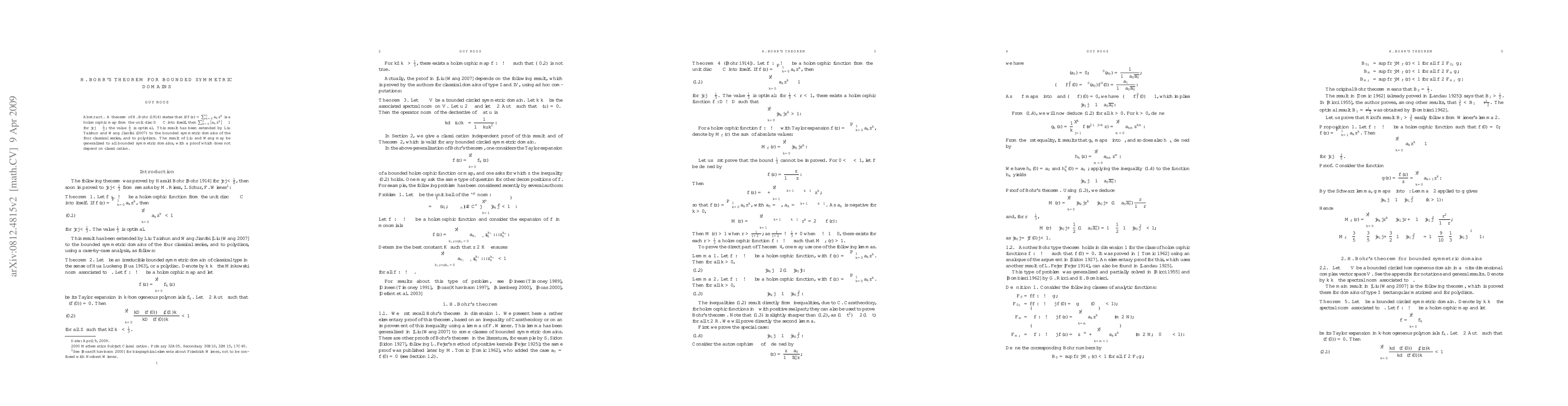A theorem of Harald Bohr (1914) states that if f is a holomorphic map from the unit disc into itself, then the sum of absolute values of its Taylor expansion is less than 1 for |z|<1/3. The bound 1/3 is optimal. This result has been extended in a suitable sense by Liu Taishun and Wang Jianfei (2007) to the bounded complex symmetric domains of the four classical series, and to polydiscs. The result of Liu and Wang may be generalized to all bounded symmetric domains, with a proof which does not depend on classification.